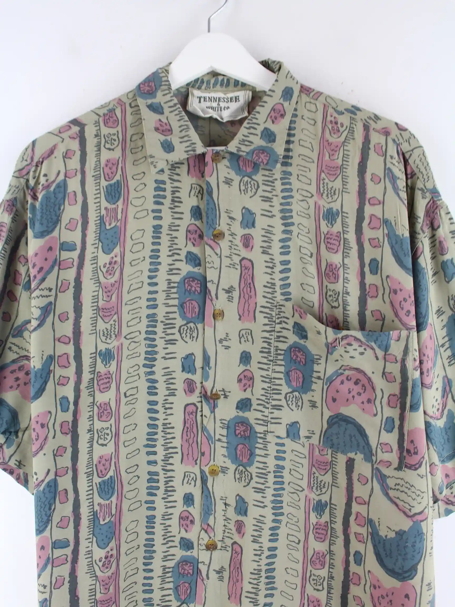 Mehrfarbiges Vintage Freizeit Hemd aus den 90'ern in Größe L. Es ist aus einer Synthetikmischung und in sehr gutem Zustand in Stock.
