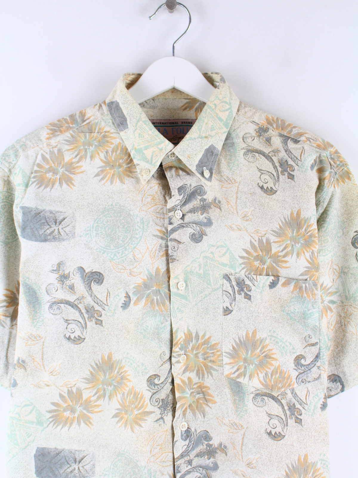 Vintage leisure shirt in size M from the 90's. It is made of cotton and available in bright colors.