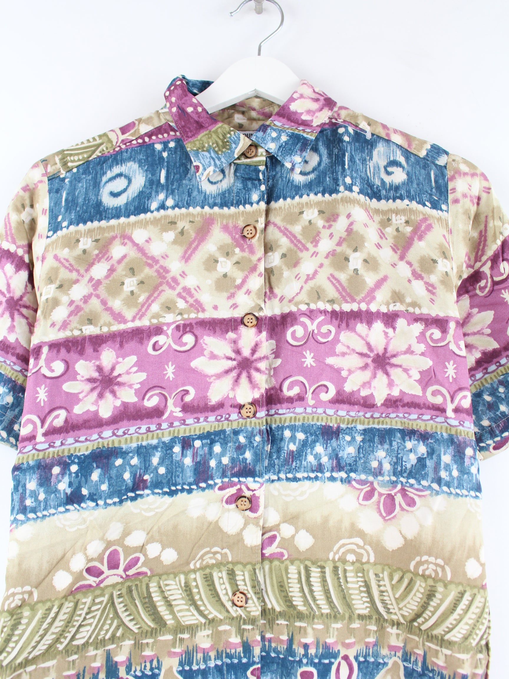 Multi-colored vintage casual shirt from the 90's in size XS. It is made of a cotton blend and is in very good condition.