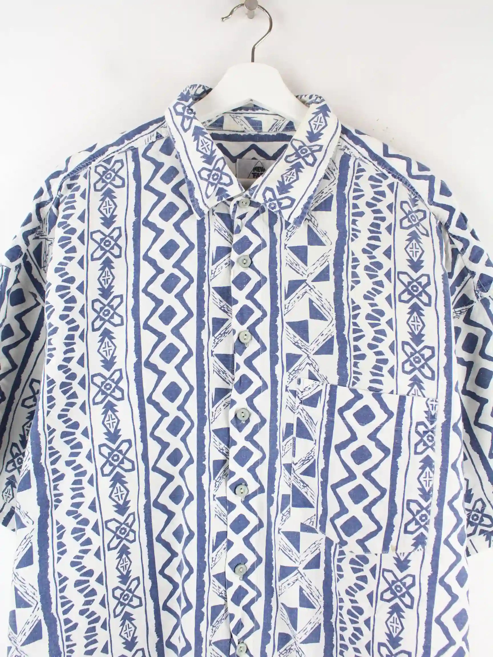 Vintage Freizeit Hemd in Größe XL aus den 90'ern. Es ist aus Baumwolle gefertigt und in Weiß lieferbar.