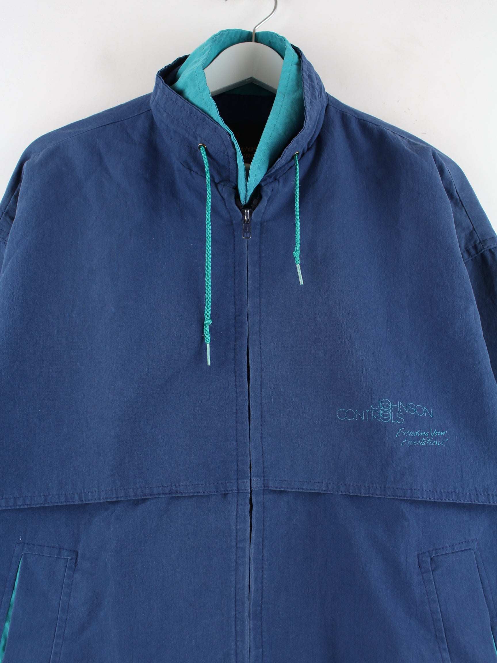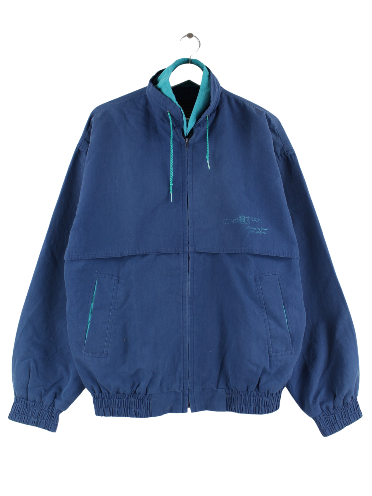 Vintage Leichte Jacke in Größe L aus den 90'ern. Sie ist aus einer Baumwollmischung gefertigt und in Blau im Bestand.