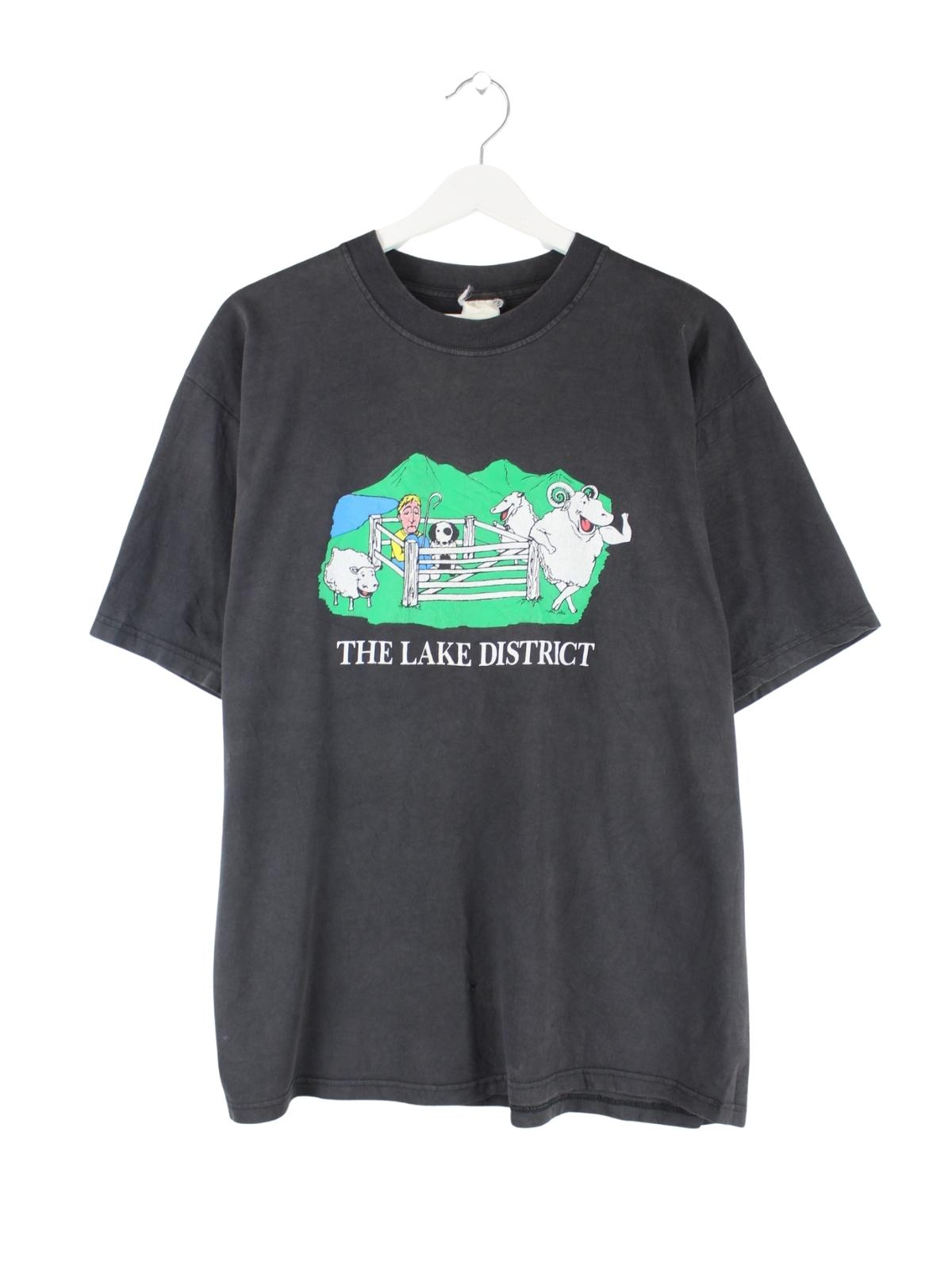 Vintage 90s Lake District Funny Print T-Shirt Grau XL