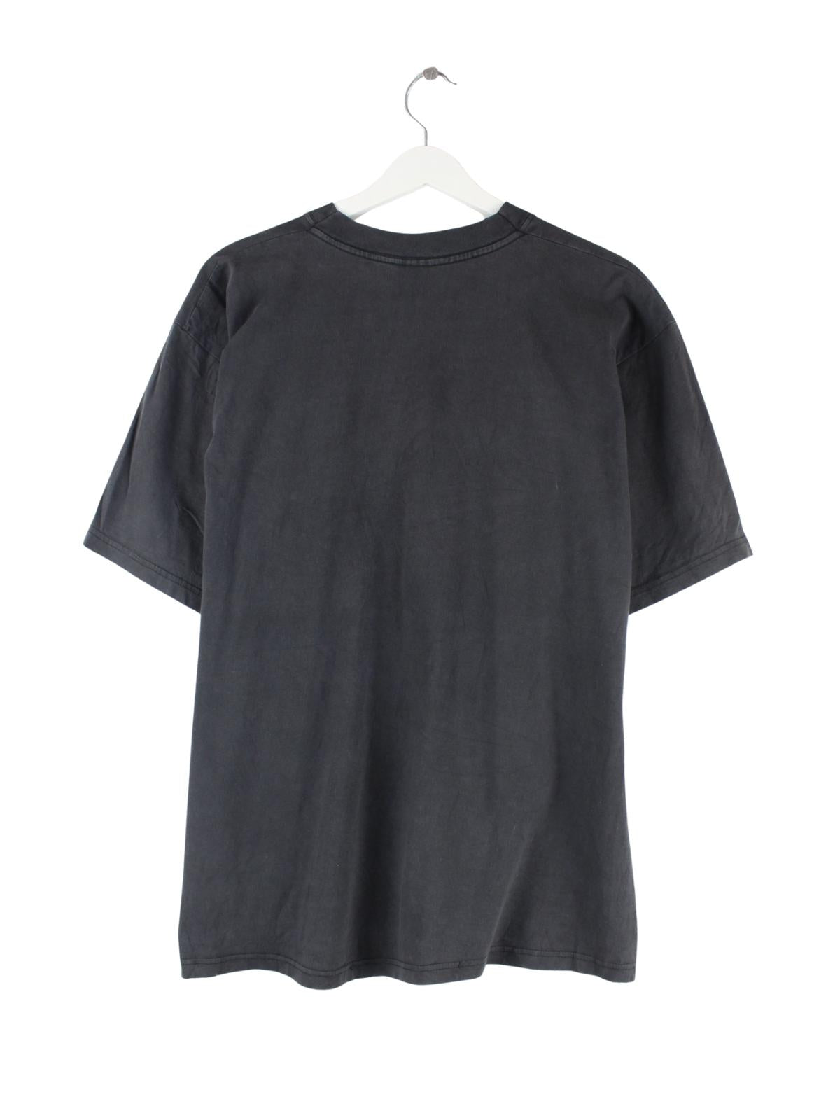 Graues Vintage T-Shirt aus den 90'ern in Größe XL. Es ist aus Baumwolle gemacht. Den Zustand würden wir als 'In Ordnung' bezeichnen (vergl. Bilder).Mit schickem District Print.