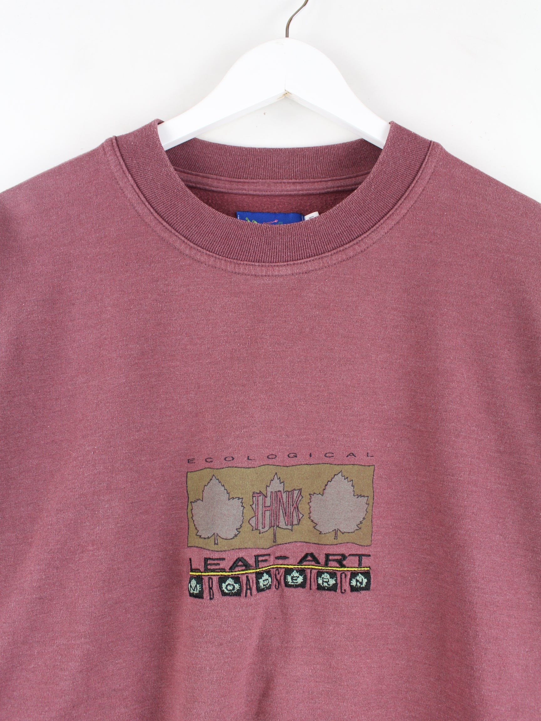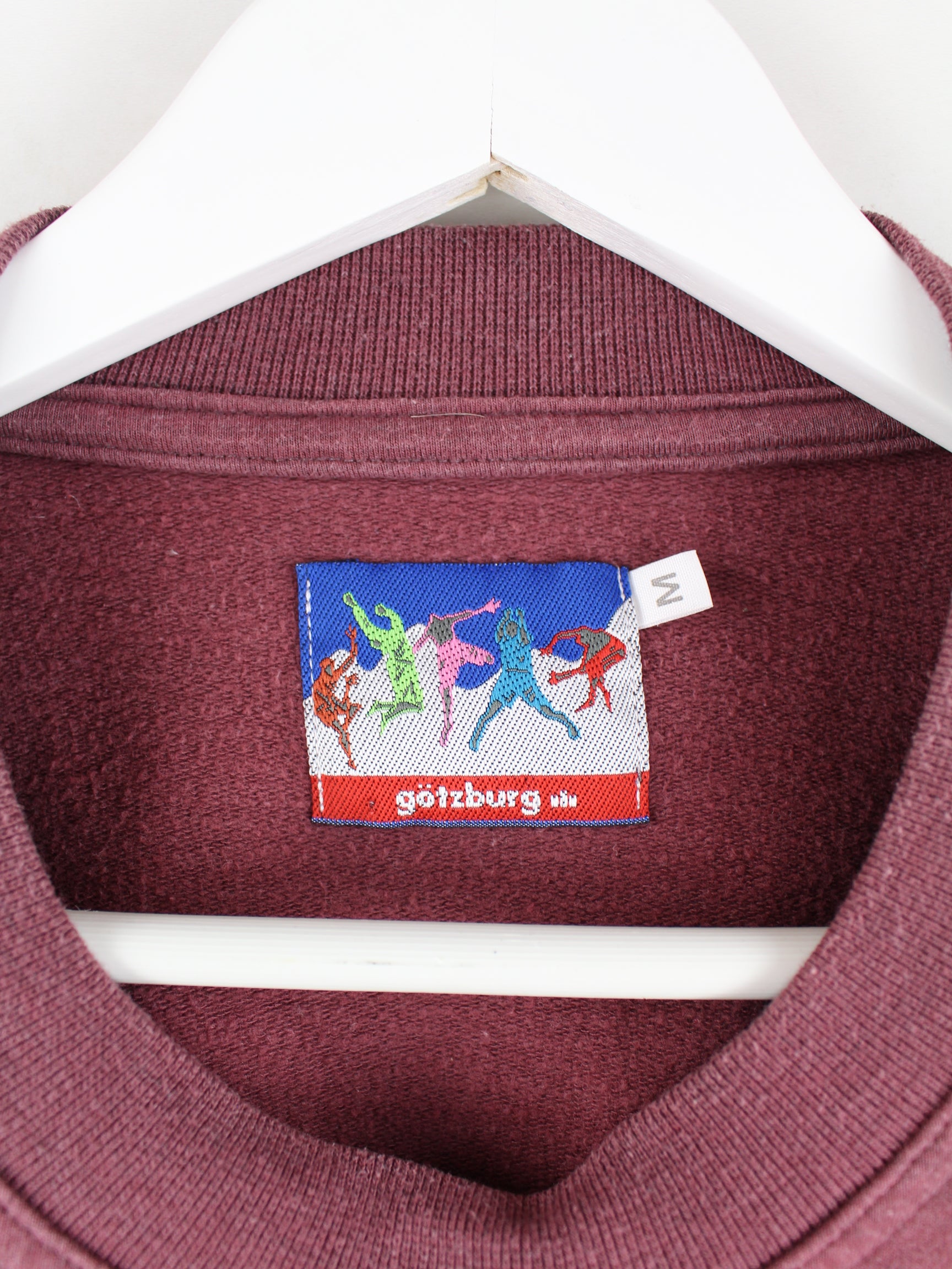 Vintage sweater with embroidered logo in size M from the 90's. It is made of a cotton blend and is available in red.