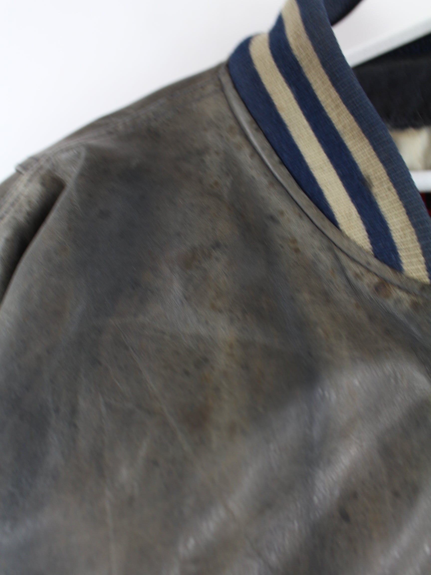 Vintage 90s Leather College Jacket Grey XL