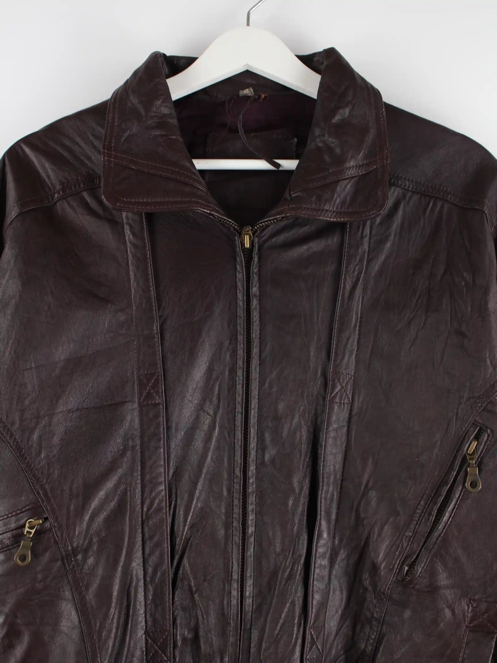 Braune Vintage Jacke aus den 90'ern in Größe L. Sie ist aus Leder produziert und in sehr gutem Zustand zu haben.