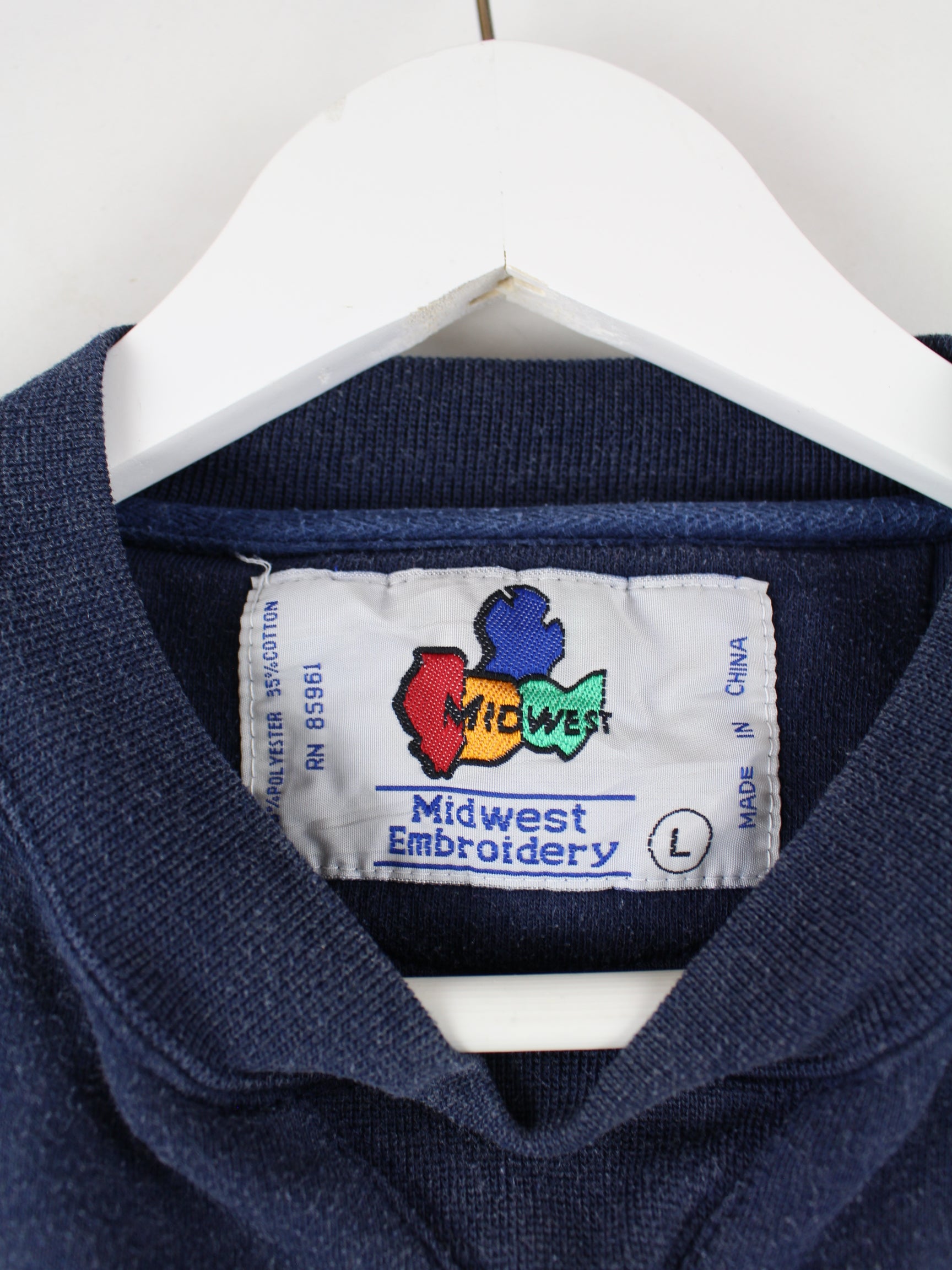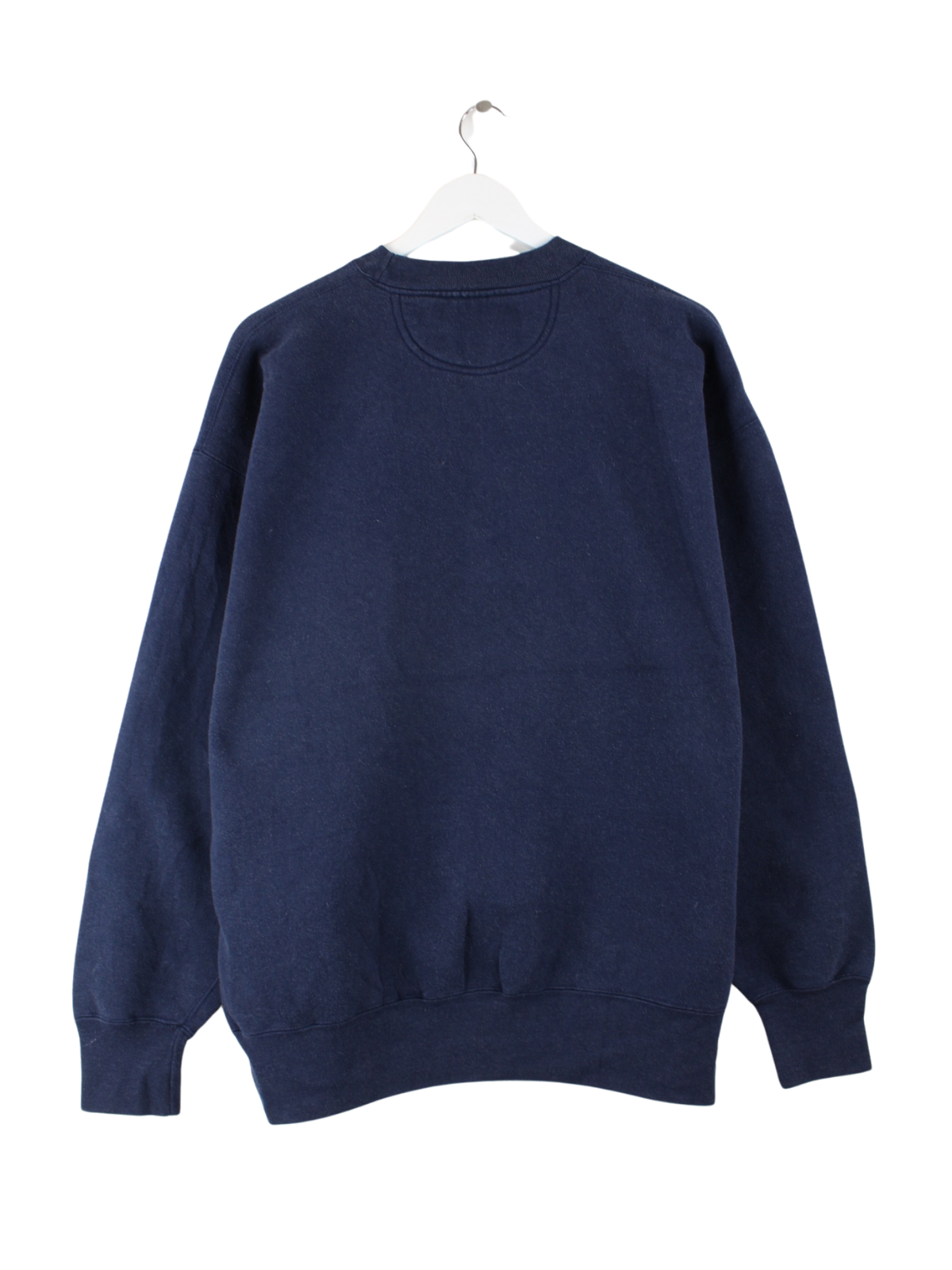 Vintage sweater with embroidery in size L from the 90's. It is made from a cotton blend and is available in blue.