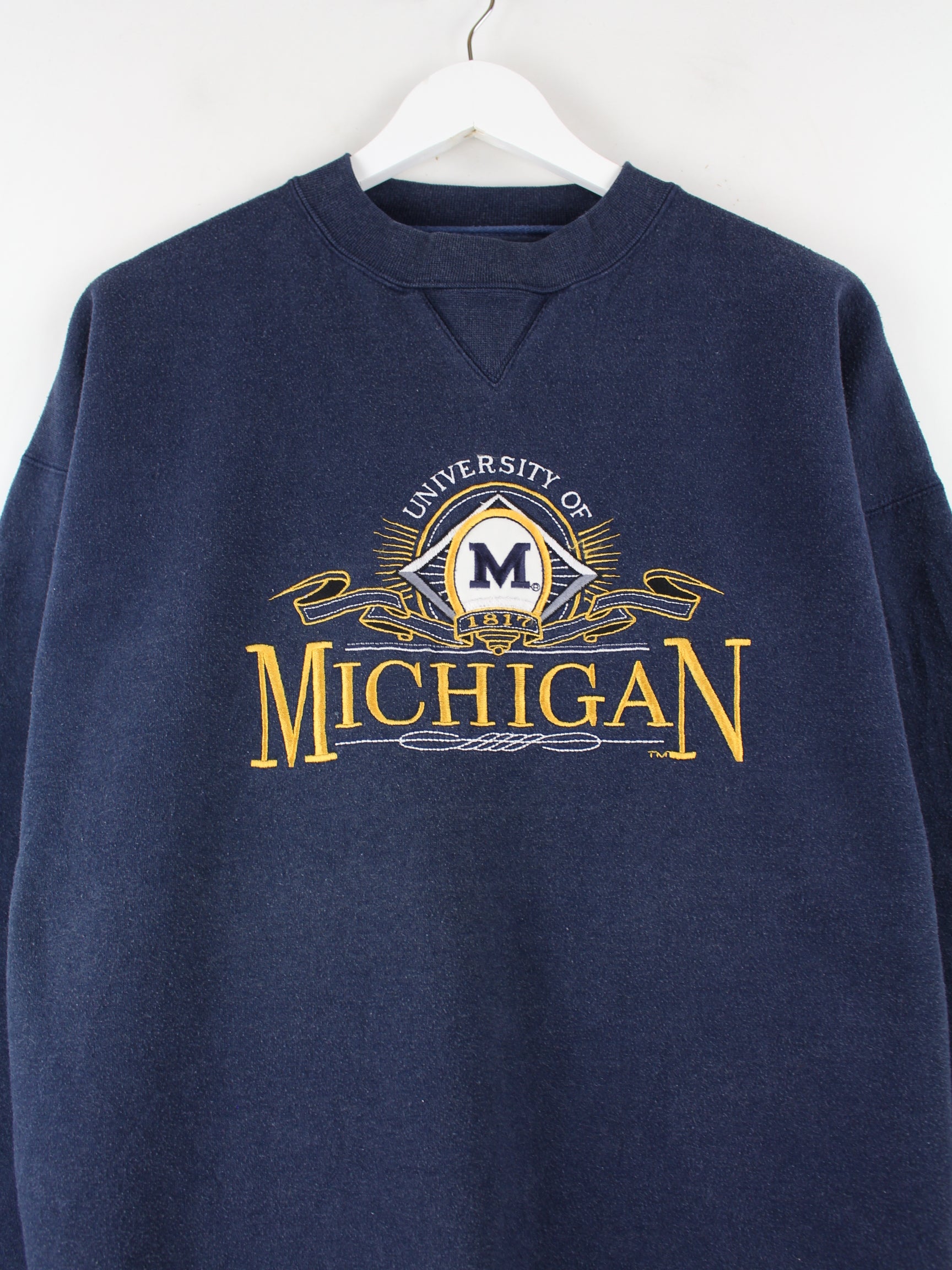 Vintage 90s Michigan Embroidered Heavy Sweater Blue L