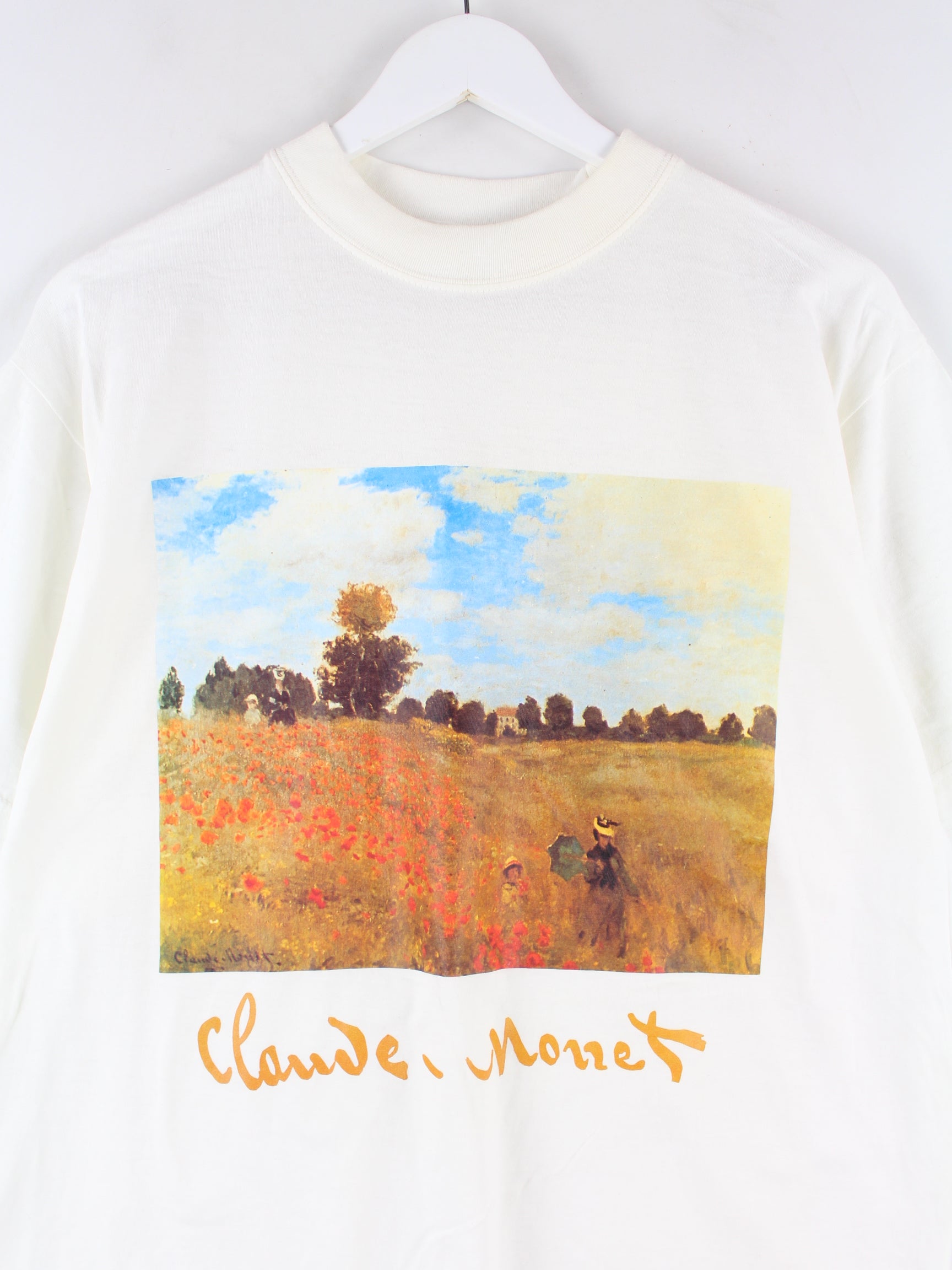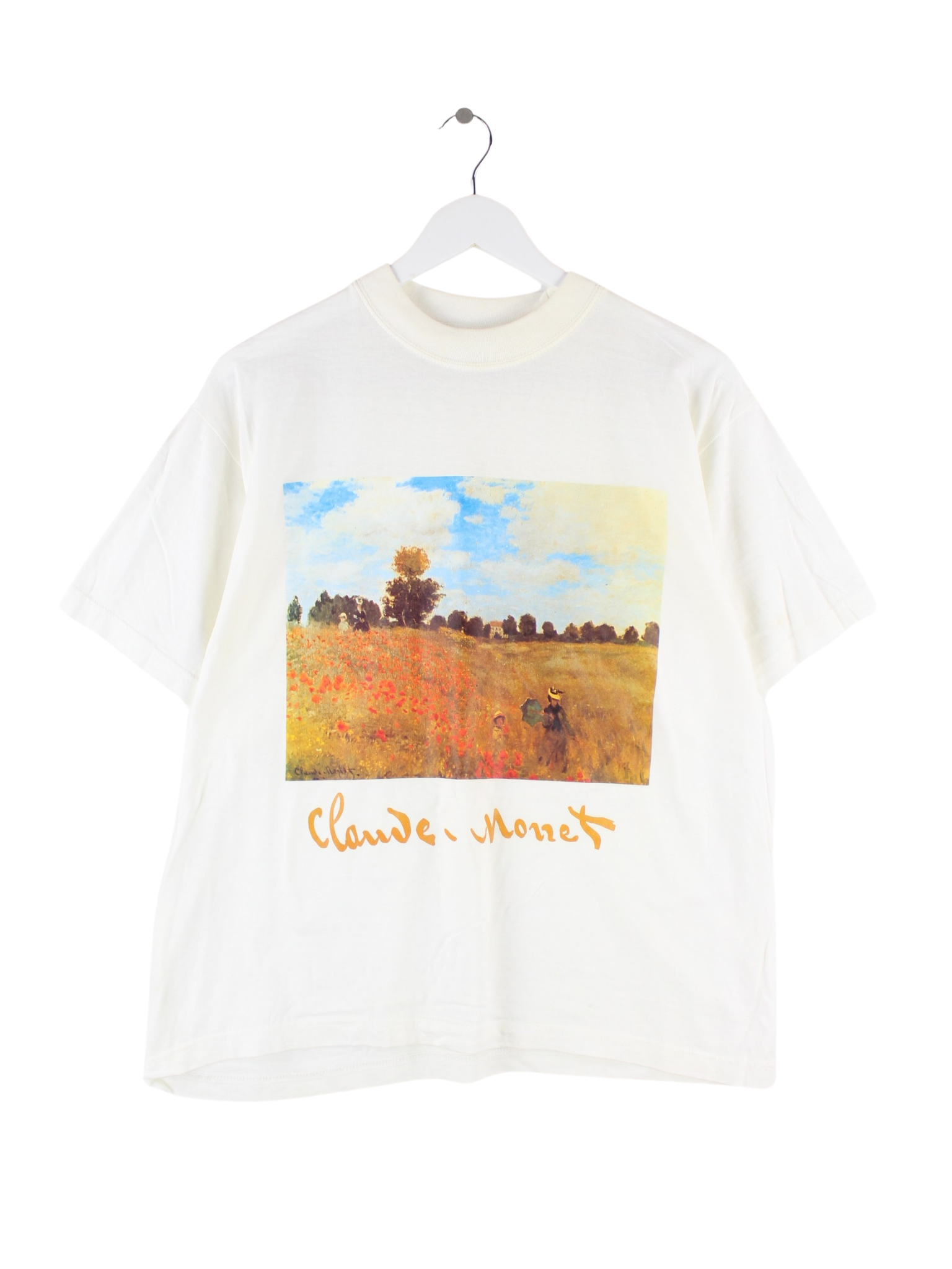 Vintage T-shirt in size M from the 90's. It is made of cotton and in stock in white. With rare Monet print.