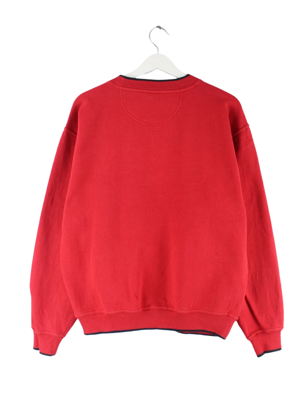 Vintage Sweater mit Stickereien in Größe M aus den 90'ern. Er ist aus einer Baumwollmischung und in Rot in Stock.