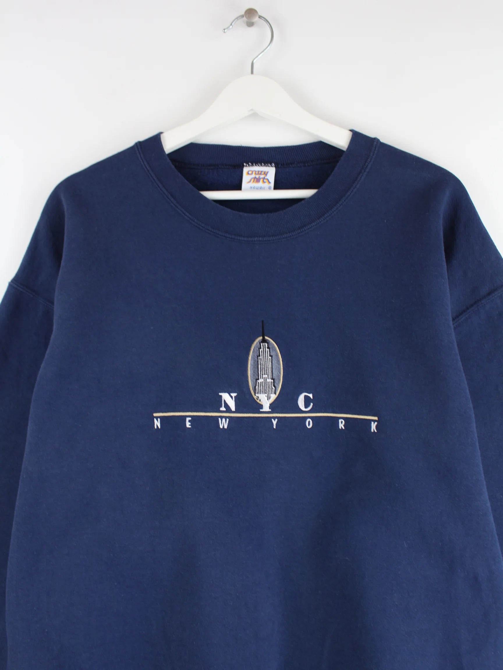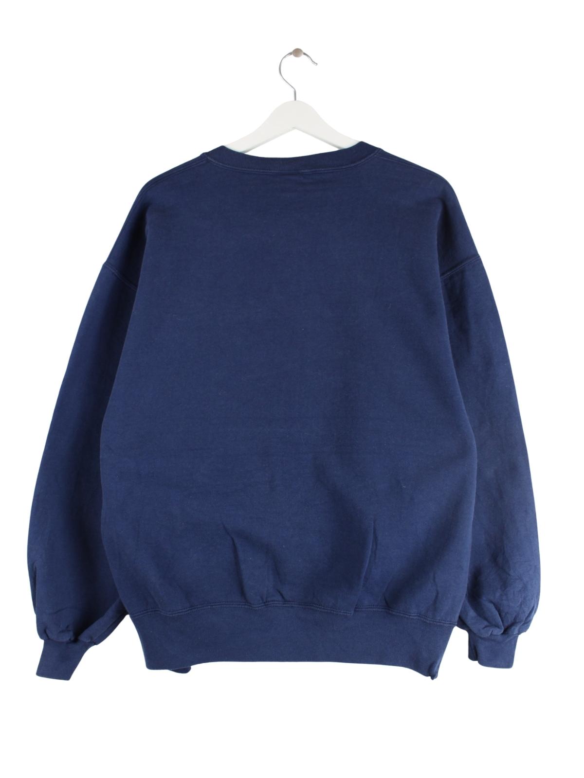 Vintage Sweater in Größe M aus den 90'ern. Er ist aus einer Baumwollmischung angefertigt und in Blau lieferbar.