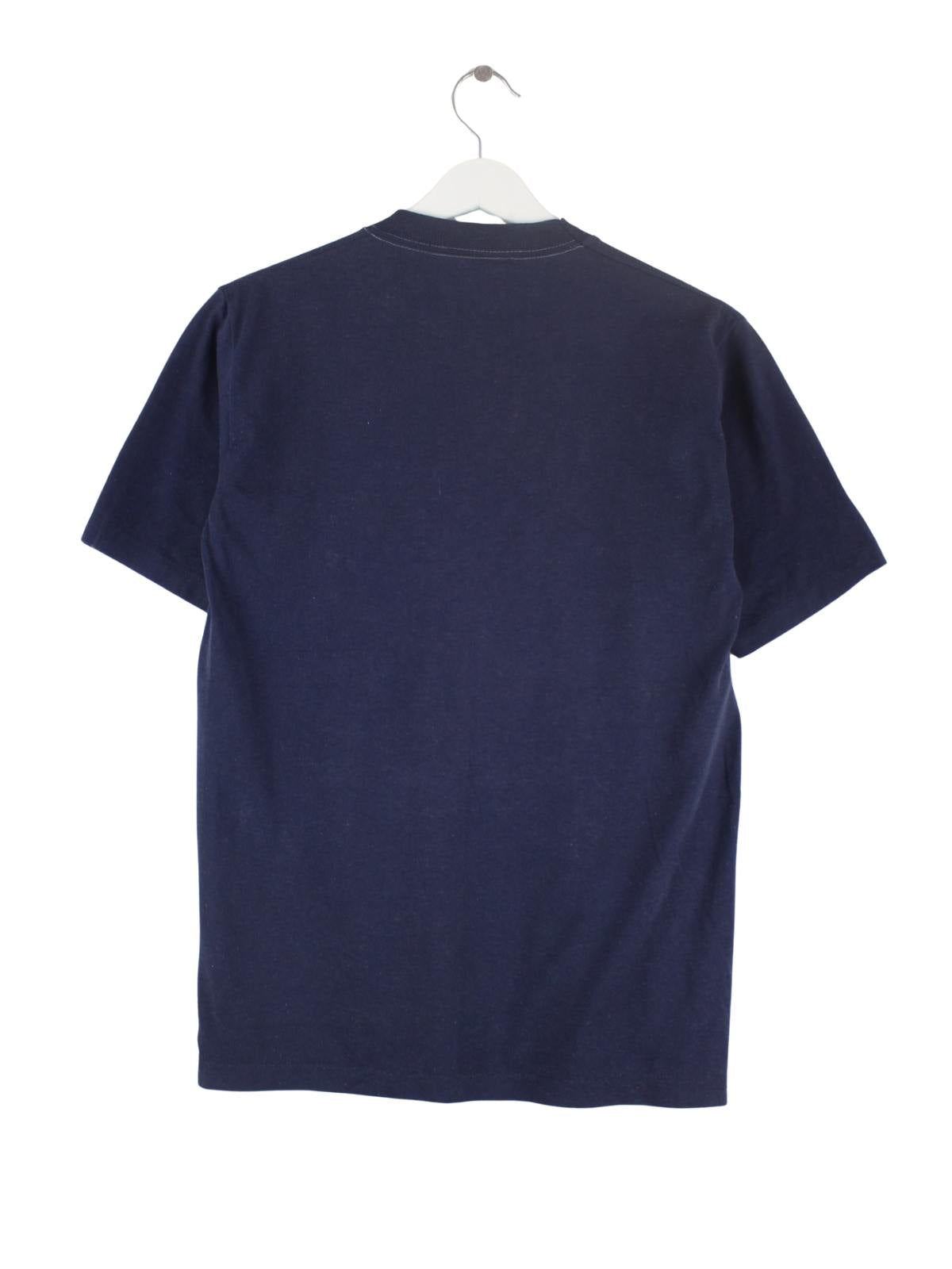 Blaues Vintage T-Shirt aus den 90'ern in Größe L. Es ist aus Baumwolle hergestellt und in gutem Zustand zu haben. Mit seltenem Ohio Print.