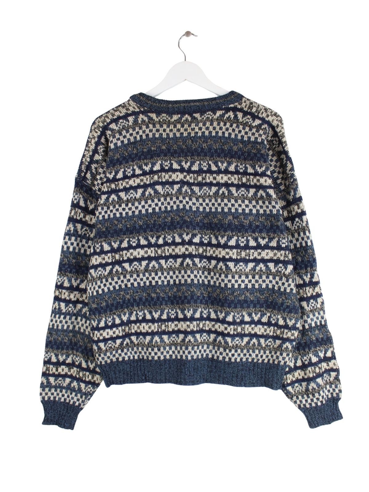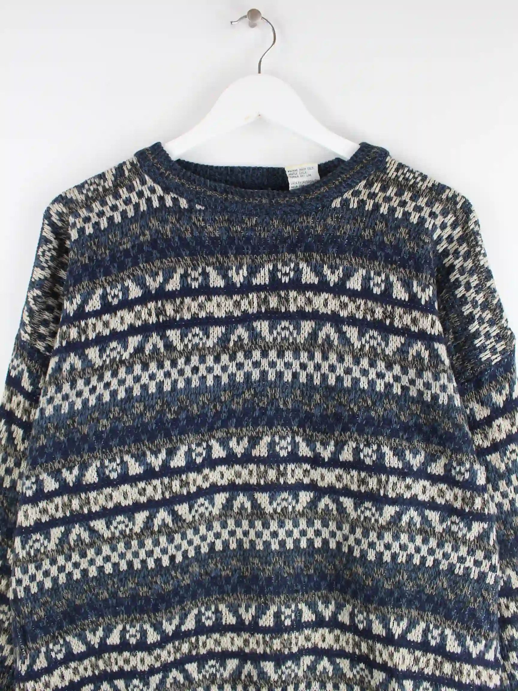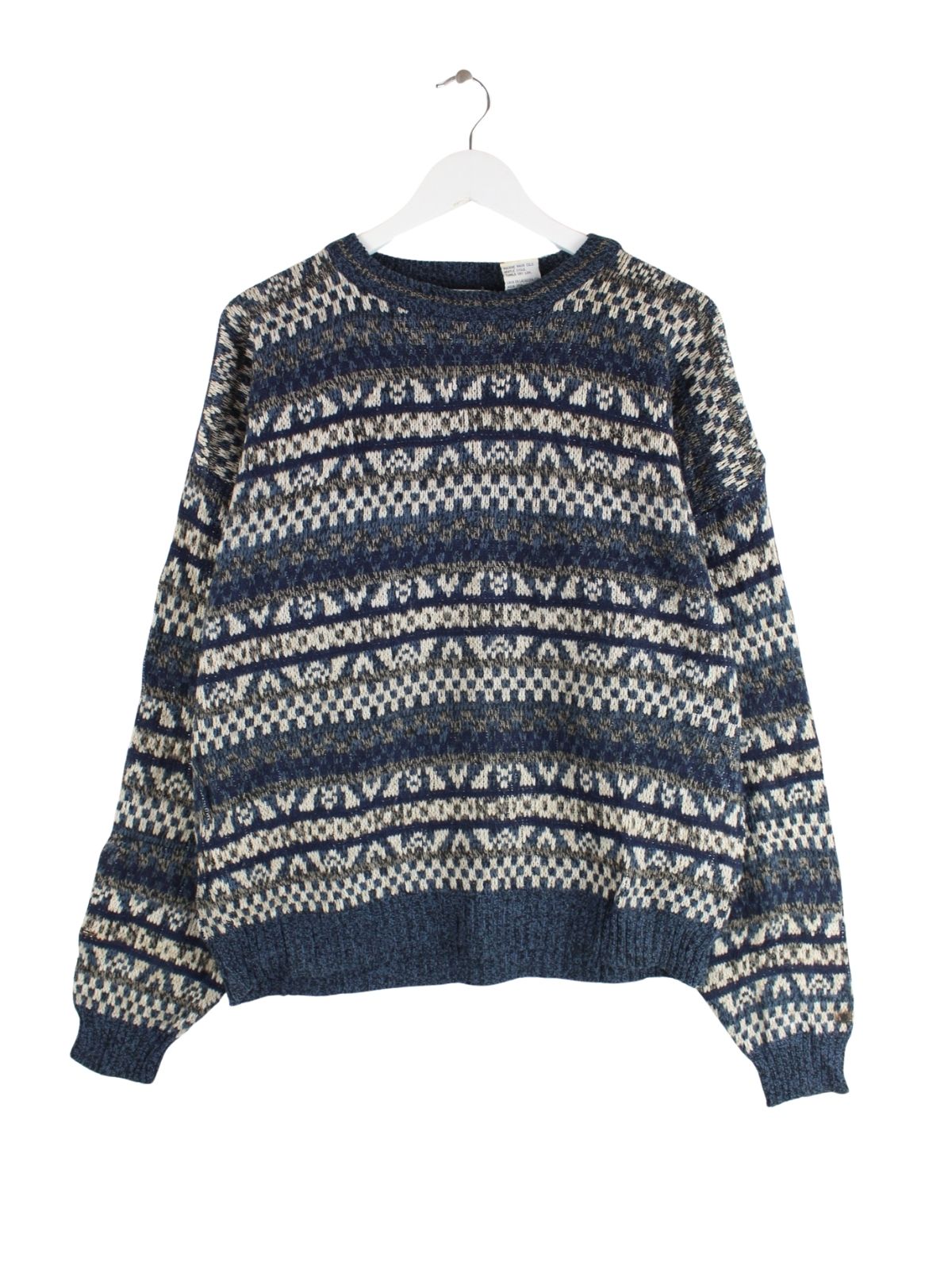Vintage Pullover in Größe L aus den 90'ern. Er ist aus Acryl produziert und in Blau vorrätig.