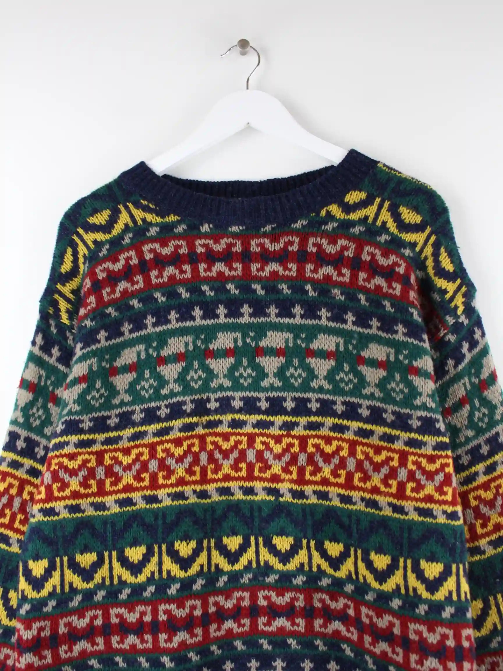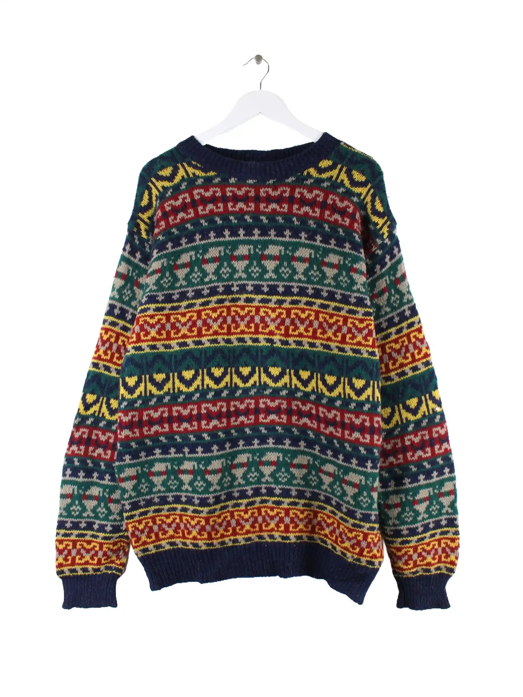 Vintage Pullover in Größe 3XL aus den 90'ern. Er ist aus Baumwolle angefertigt und in bunten Farben bei uns vorrätig.