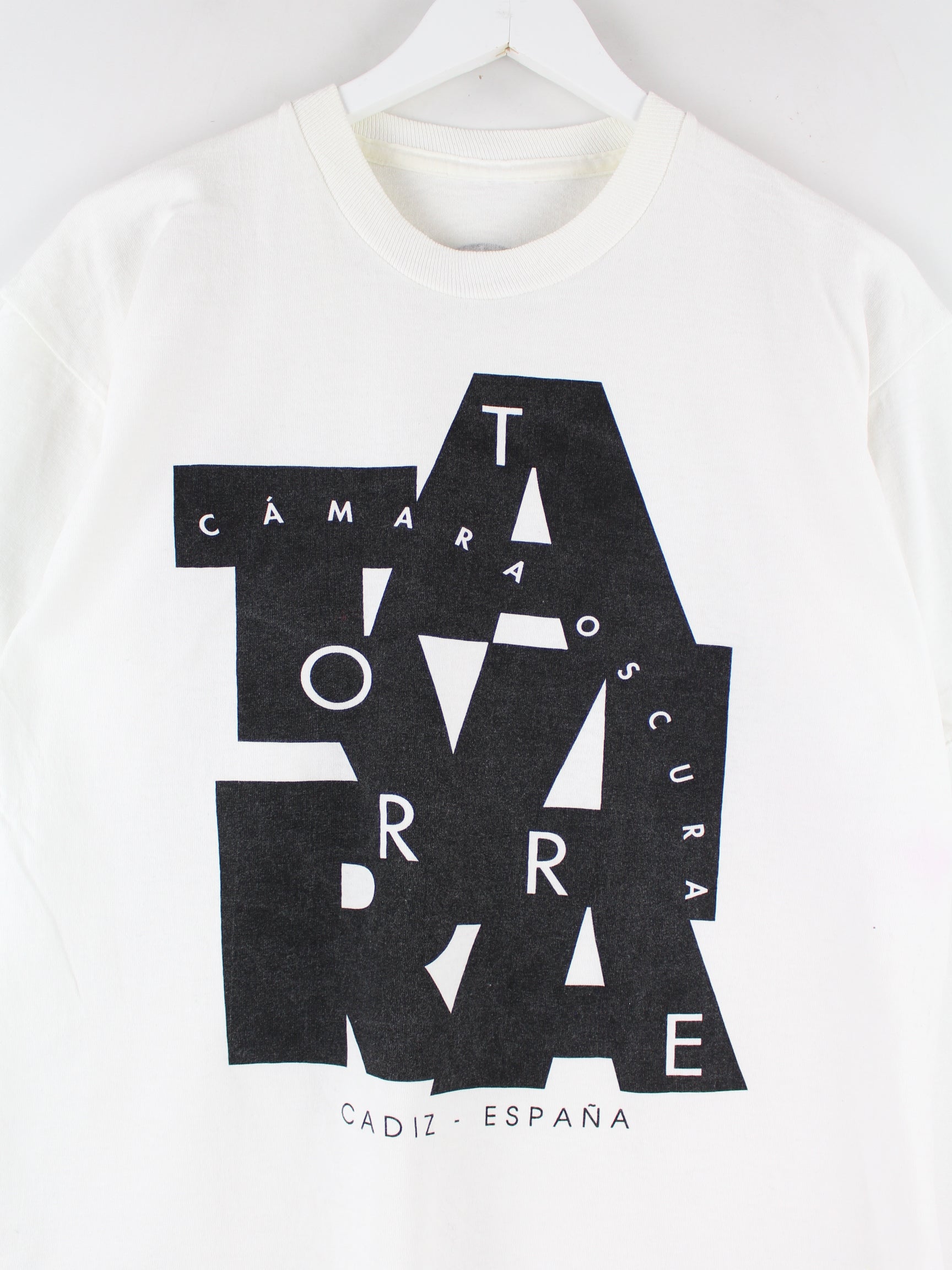 White vintage T-shirt from the 90's in size M. It is made of cotton and in good condition. With a chic stitch print.
