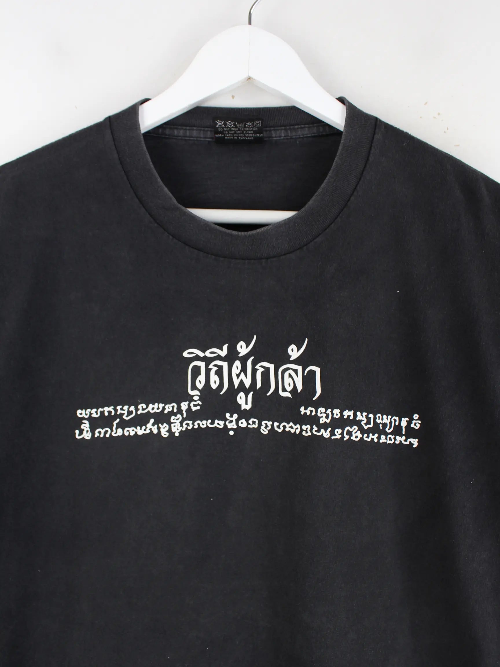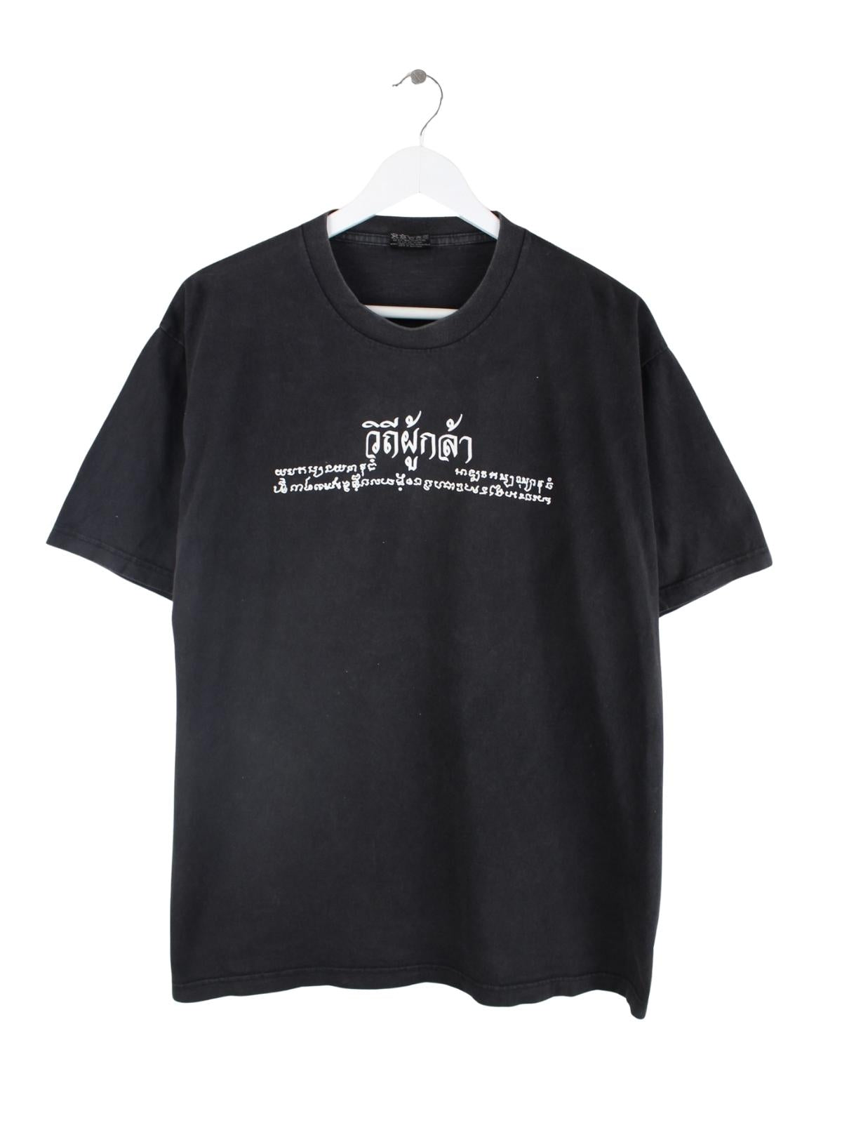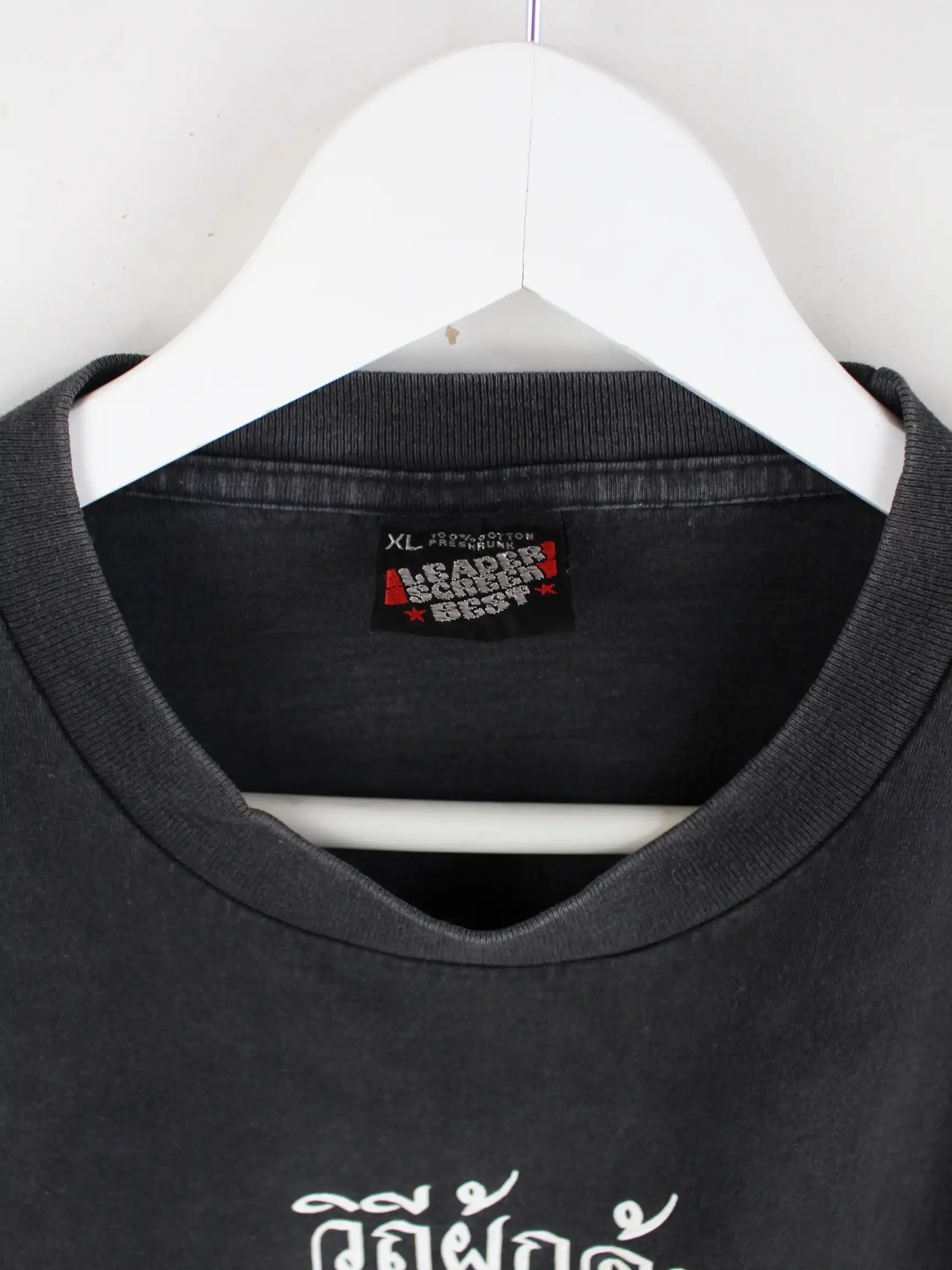 Vintage T-Shirt in Größe XL aus den 90'ern. Es ist aus Baumwolle angefertigt und in Schwarz auf Lager. Mit schönem Faded Print.