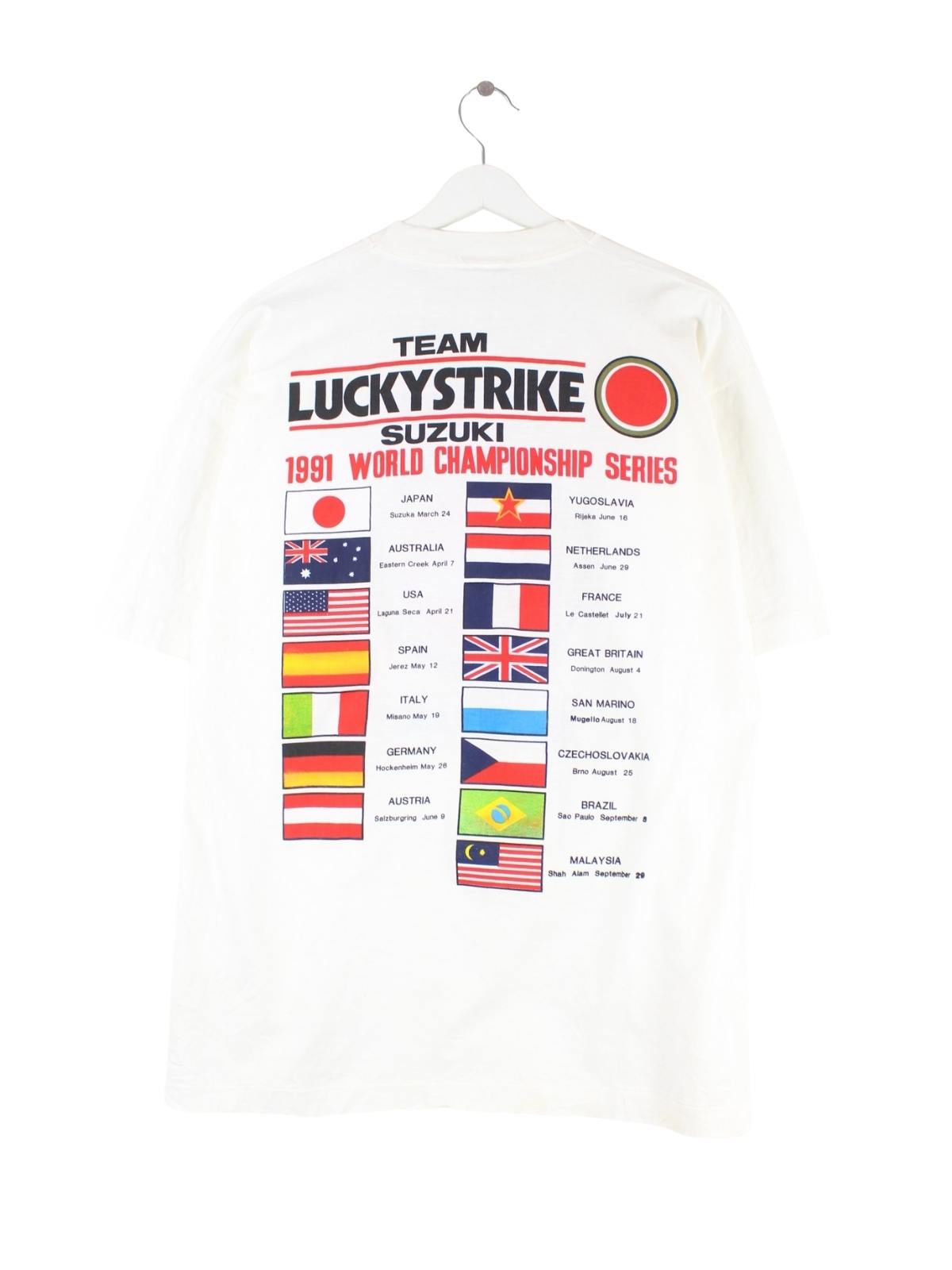 Vintage 90s Suzuki Lucky Strike Racing Print T-Shirt Weiß L