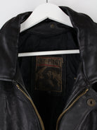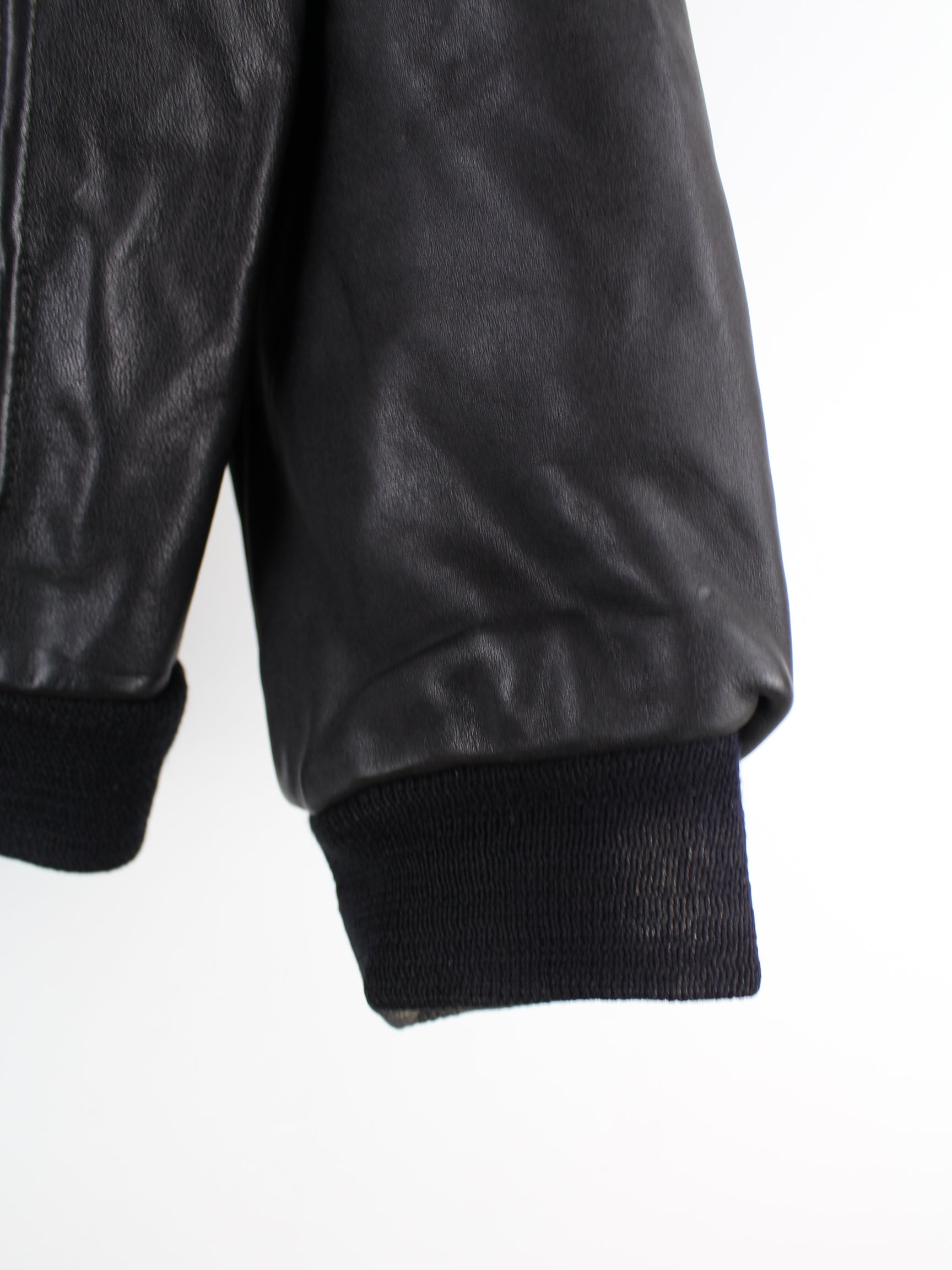 Vintage Jacke in Größe L aus den 90'ern. Sie ist aus Leder produziert und in Schwarz auf Lager.