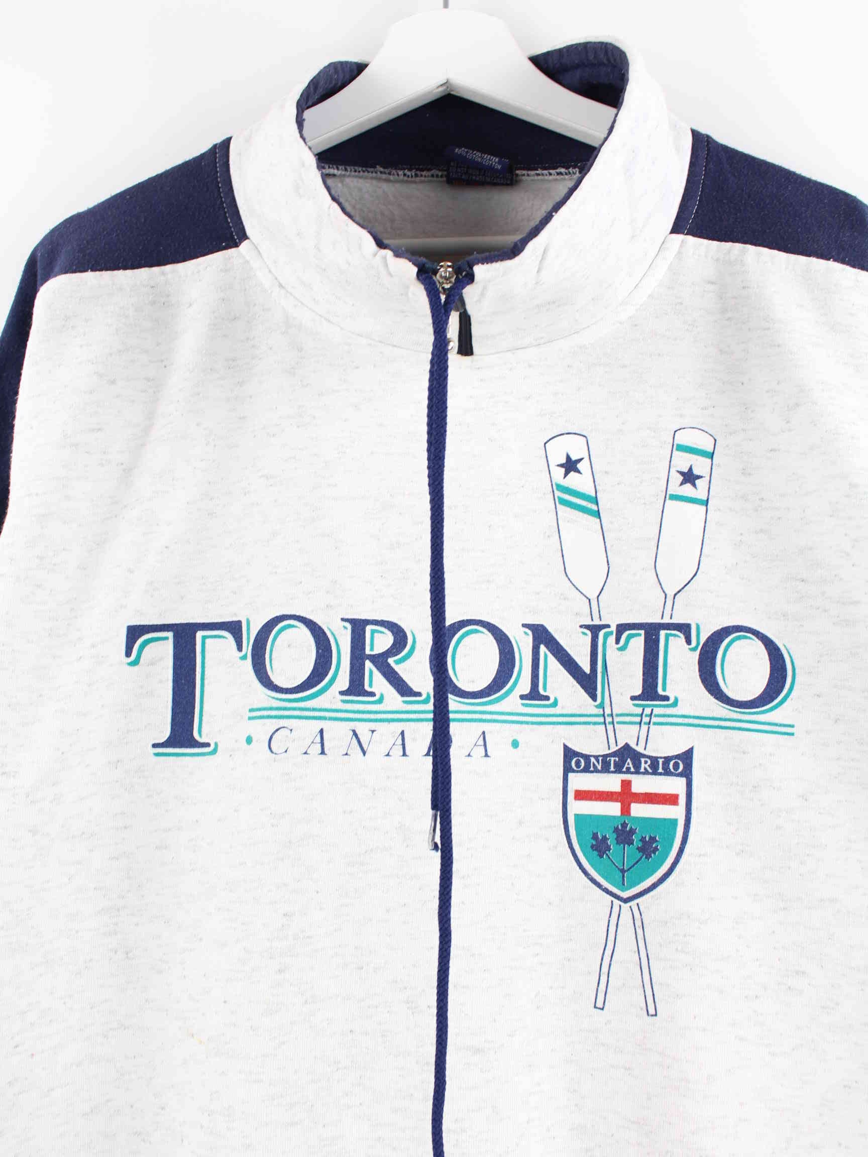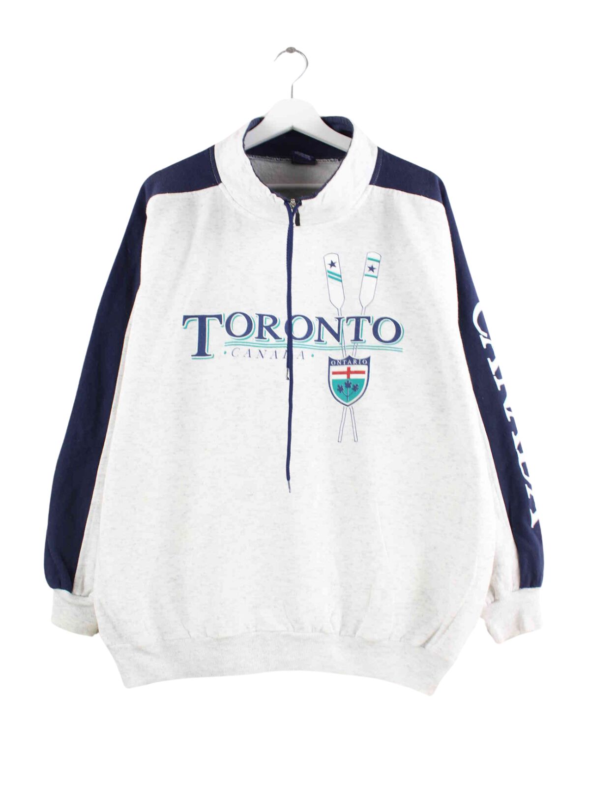 Gray vintage sweater from the 90s in size M. It is made from a cotton blend and is available from us in good condition.