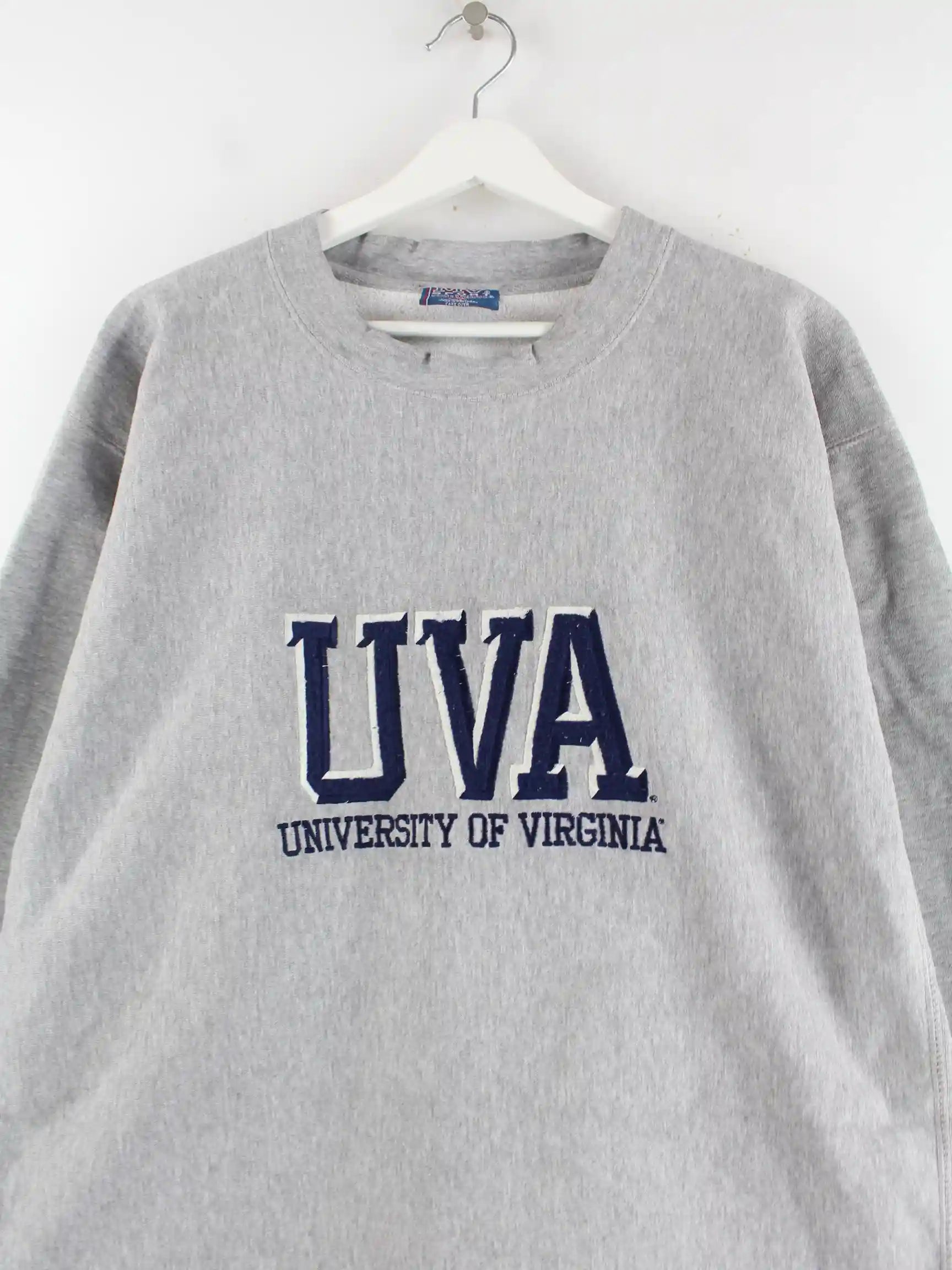 Vintage 90s University Virgina Embroidered Sweater Grau 3XL