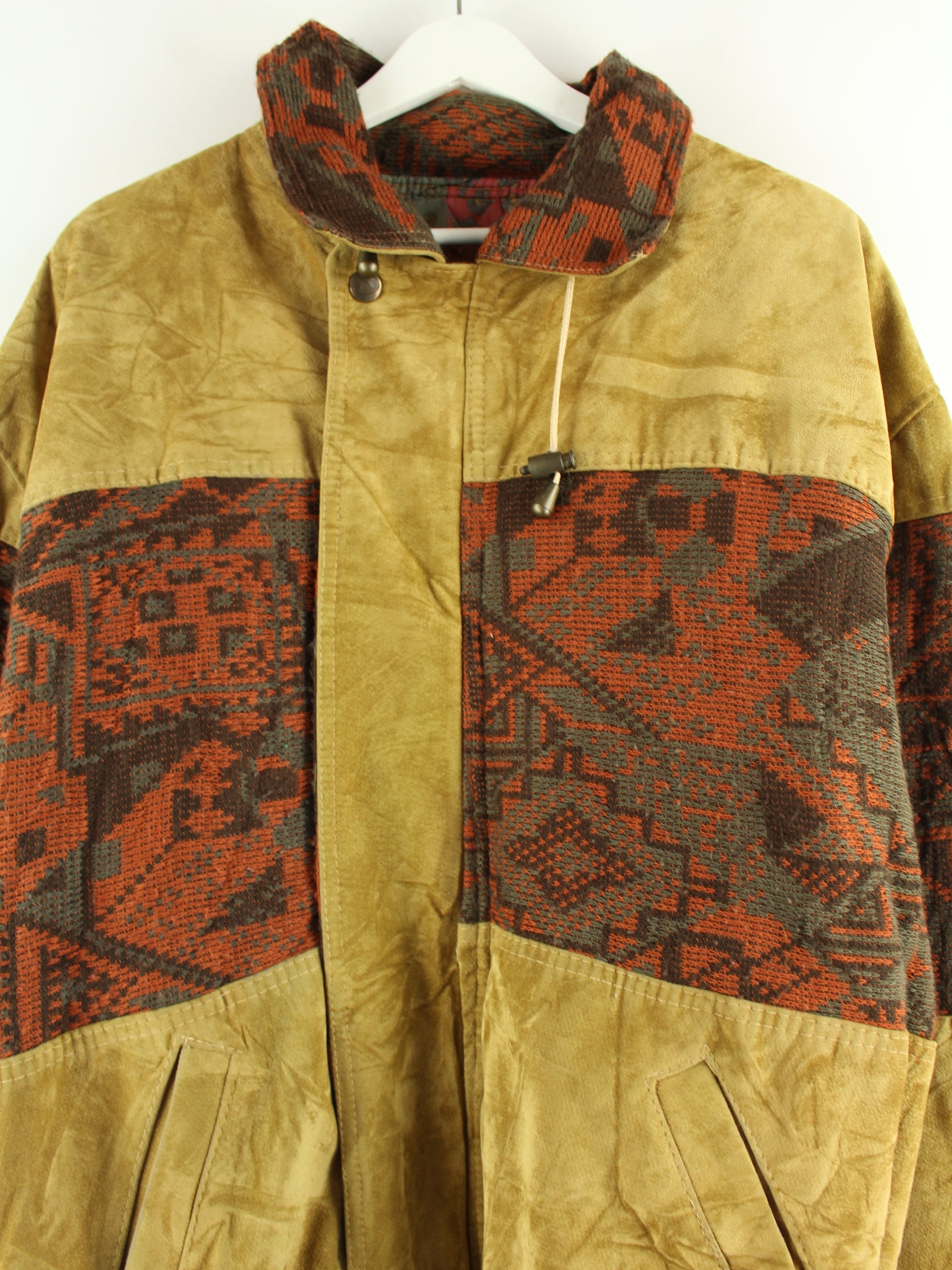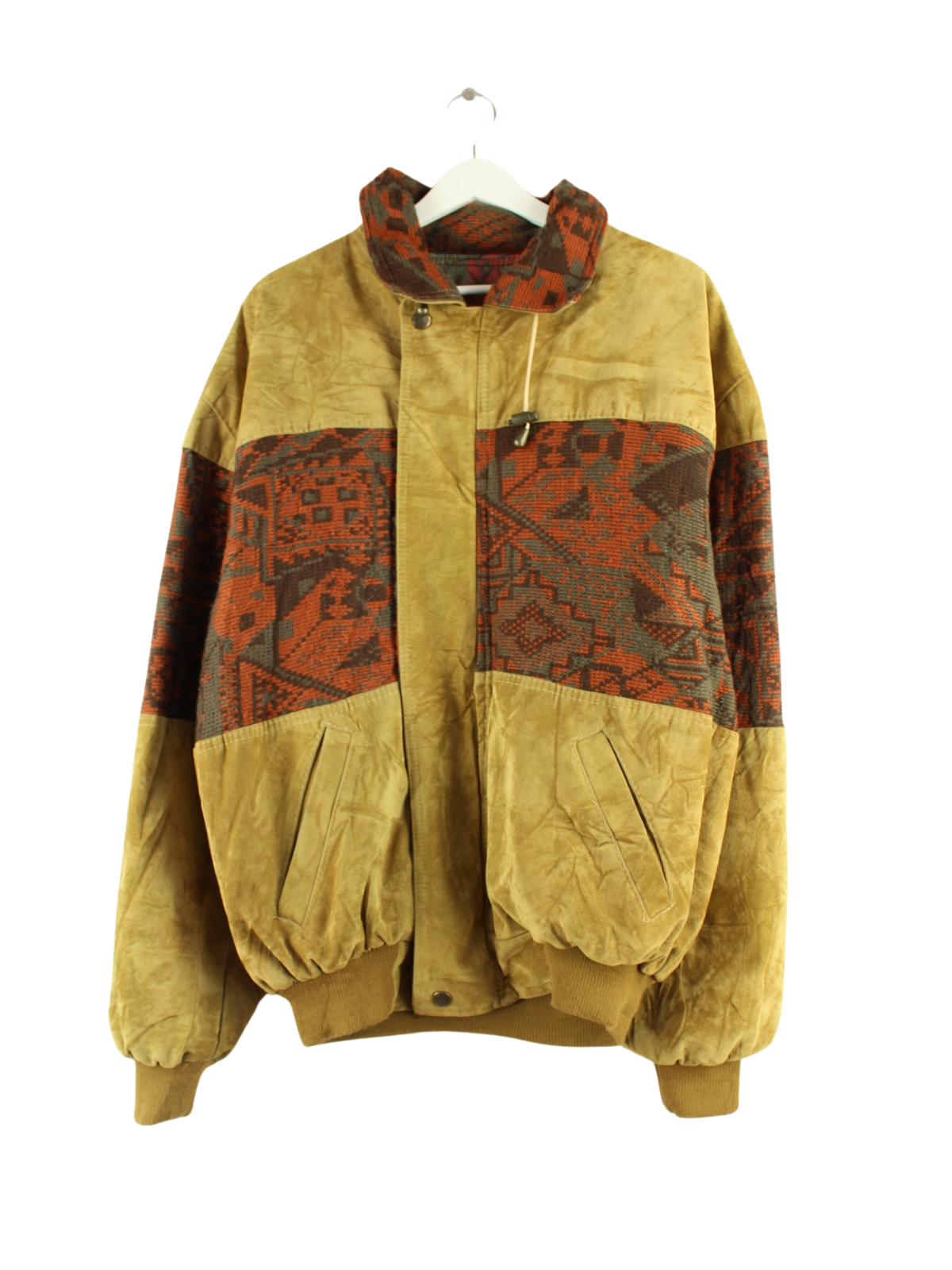 Vintage 90s Vintage Aztek Suede Bomber Jacket Beige XXL