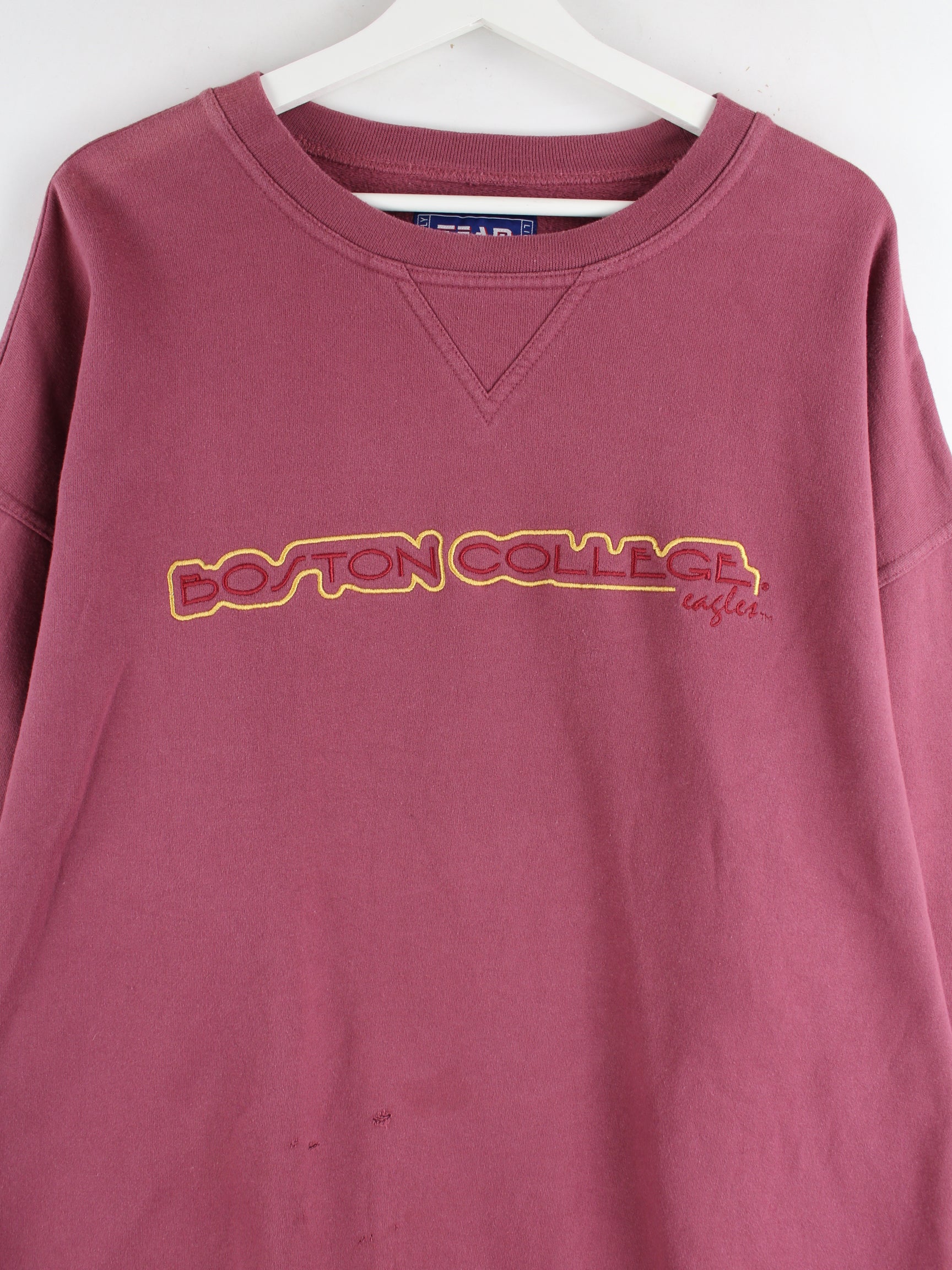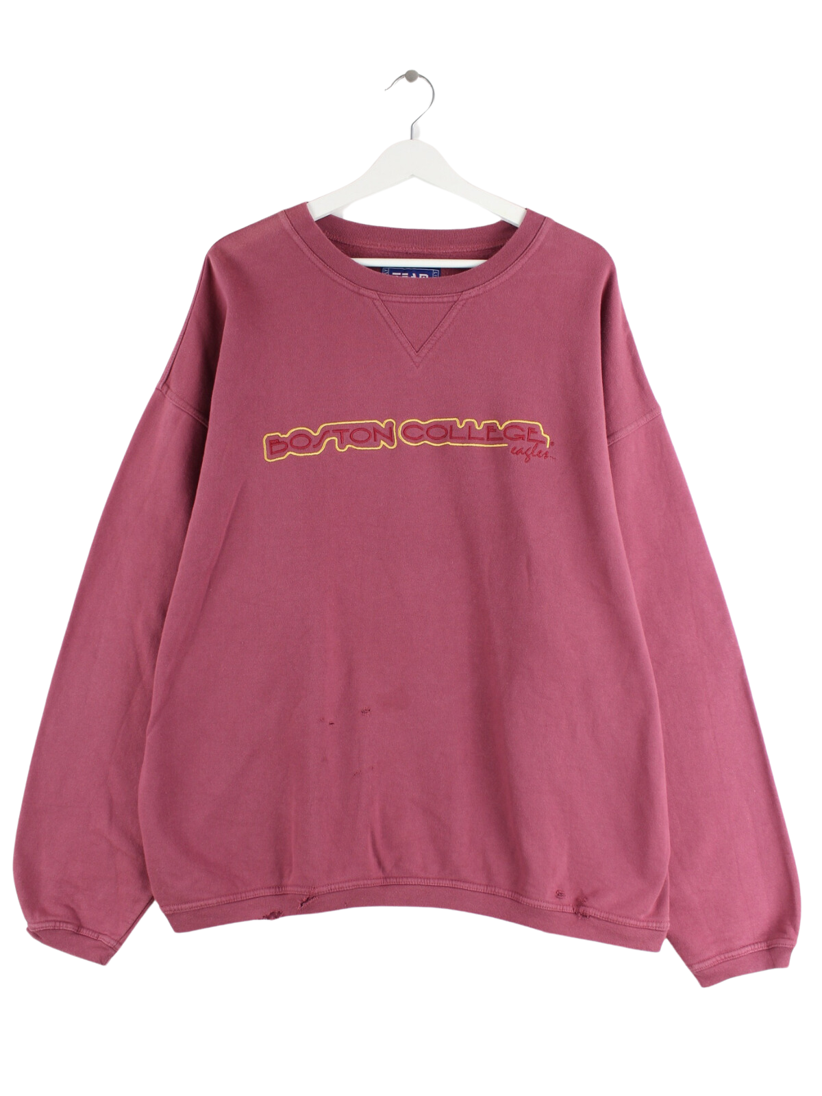 Vintage Sweater mit gestickten Motiven in Größe XXL aus den 90'ern. Er ist aus einer Baumwollmischung gemacht und in Rot bei uns zu bekommen.