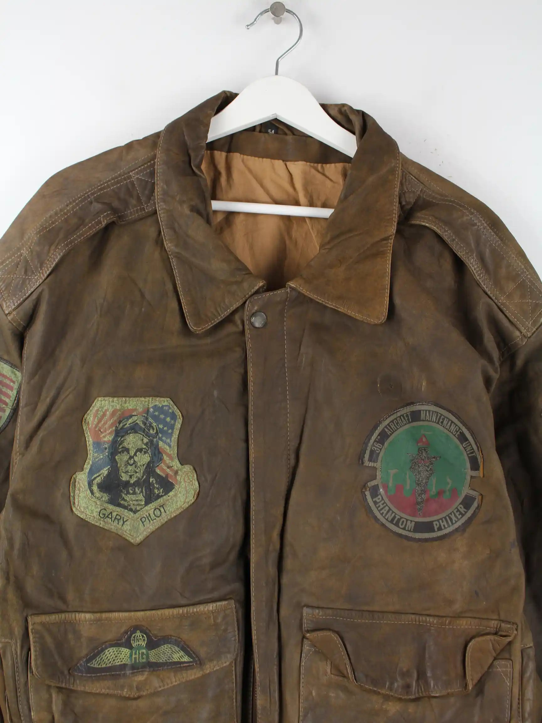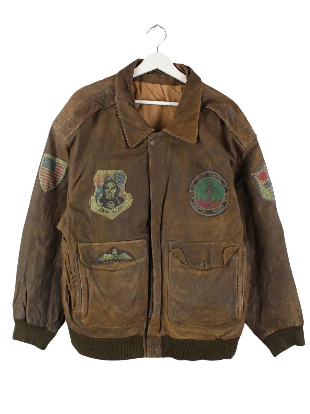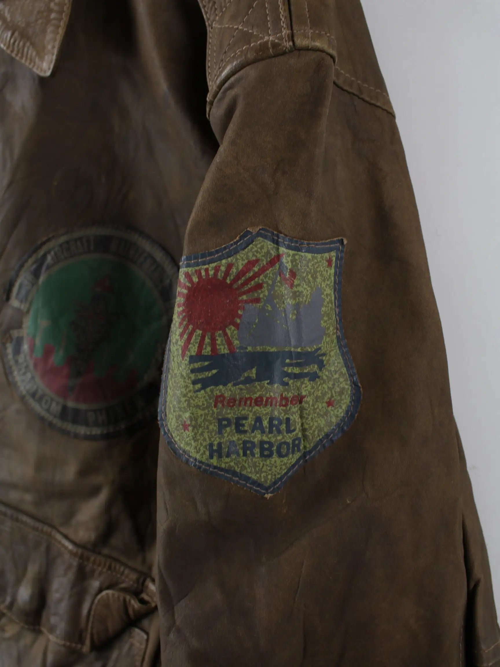 Vintage 90s Vintage Pearl Harbour Leder Bomber Jacke Braun XL