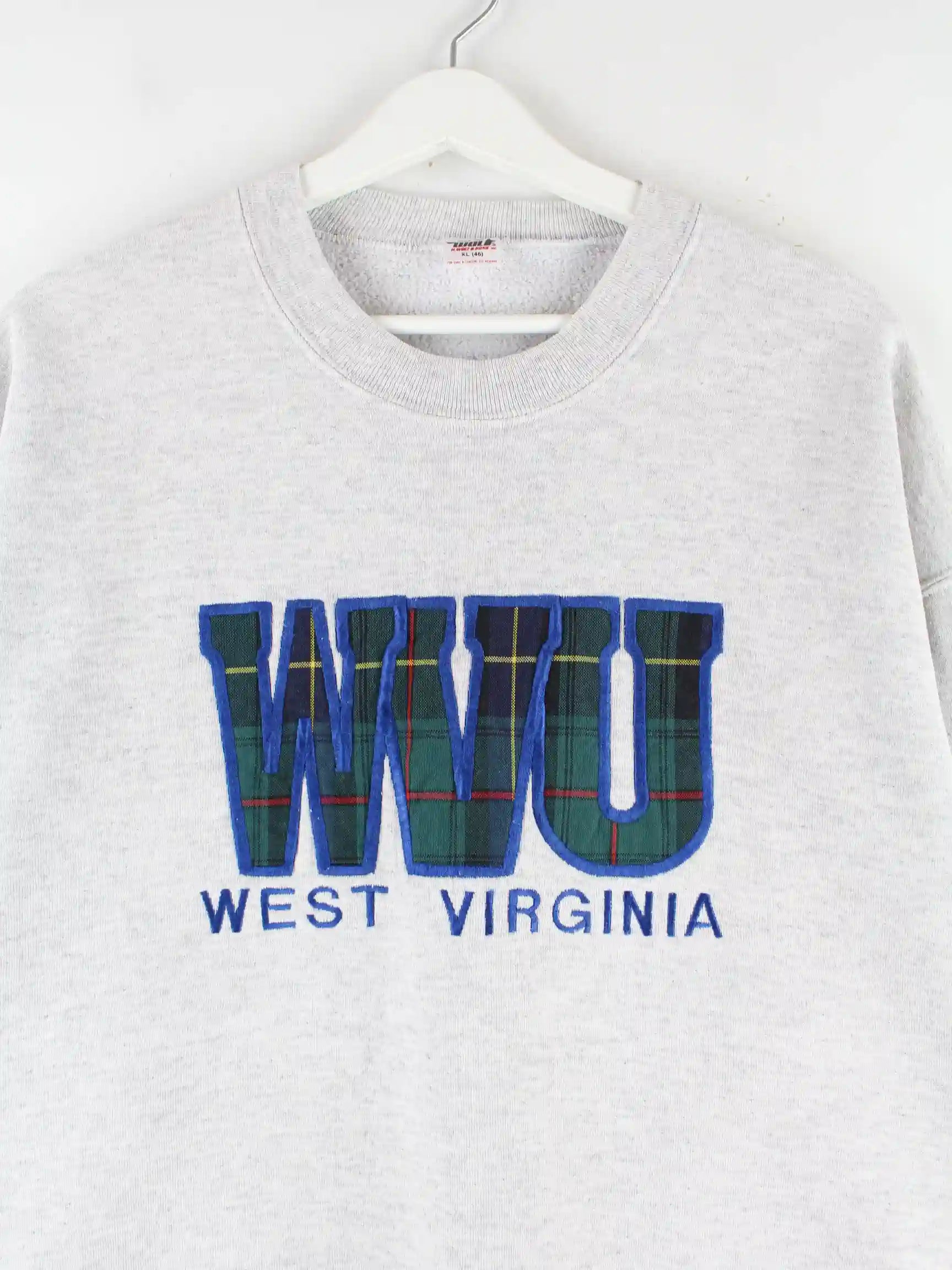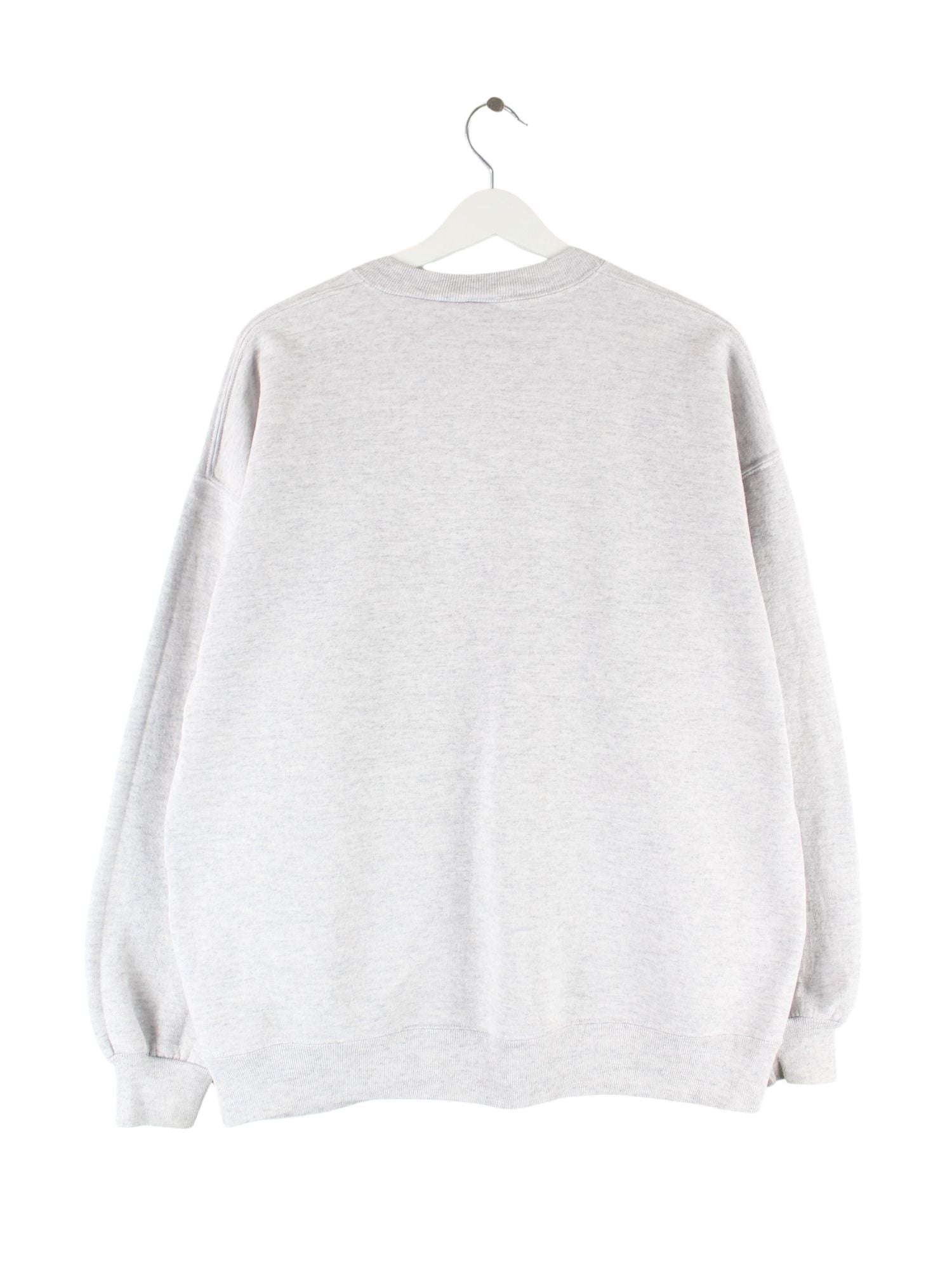 Vintage Sweater in Größe XL aus den 90'ern. Er ist aus einer Baumwollmischung hergestellt und in Grau bei uns vorrätig.
