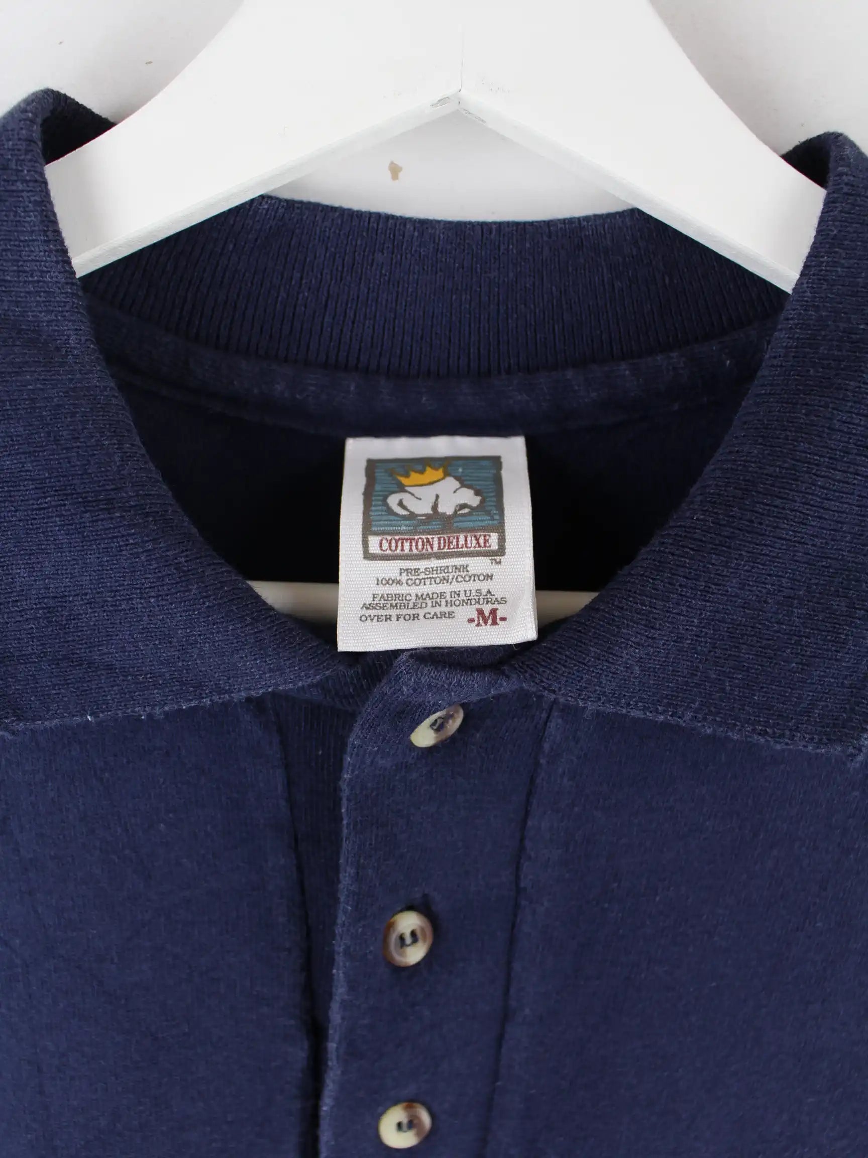 Vintage Poloshirt in Größe M. Es ist aus Baumwolle hergestellt und in Blau in Stock.