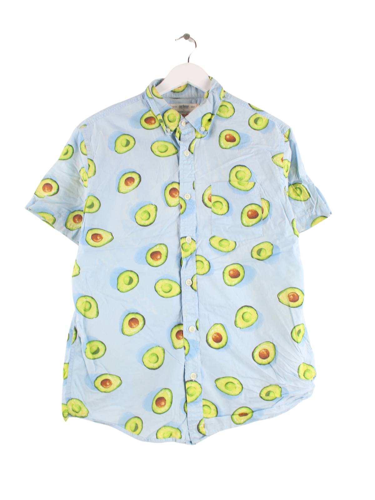 Vintage Avocado Pattern Hawaii Shirt Blue M