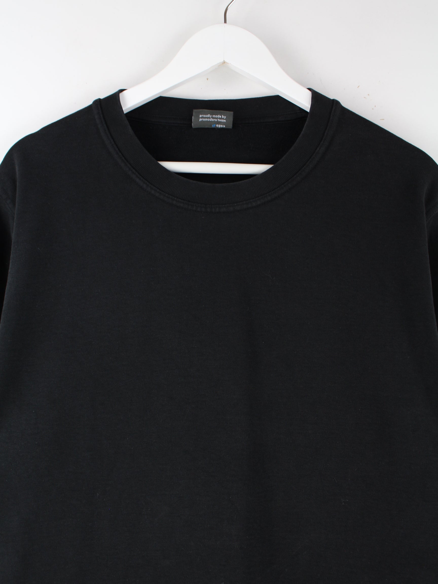 Vintage Sweater in Größe XL. Er ist aus einer Baumwollmischung und in Schwarz bei uns vorrätig.