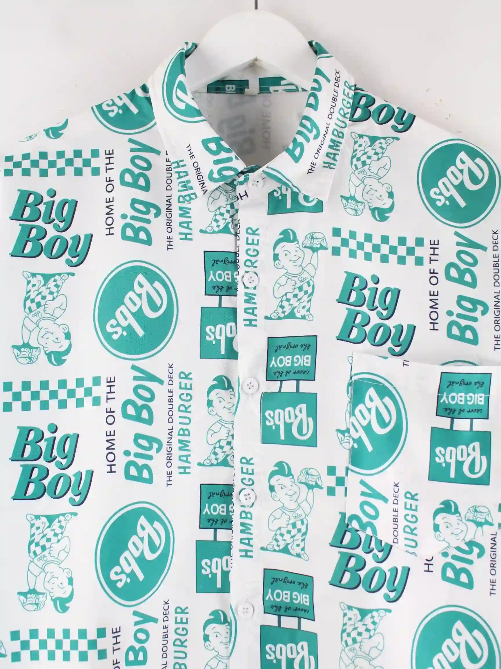 Vintage Big Boy Hawaii Print Hemd Weiß M