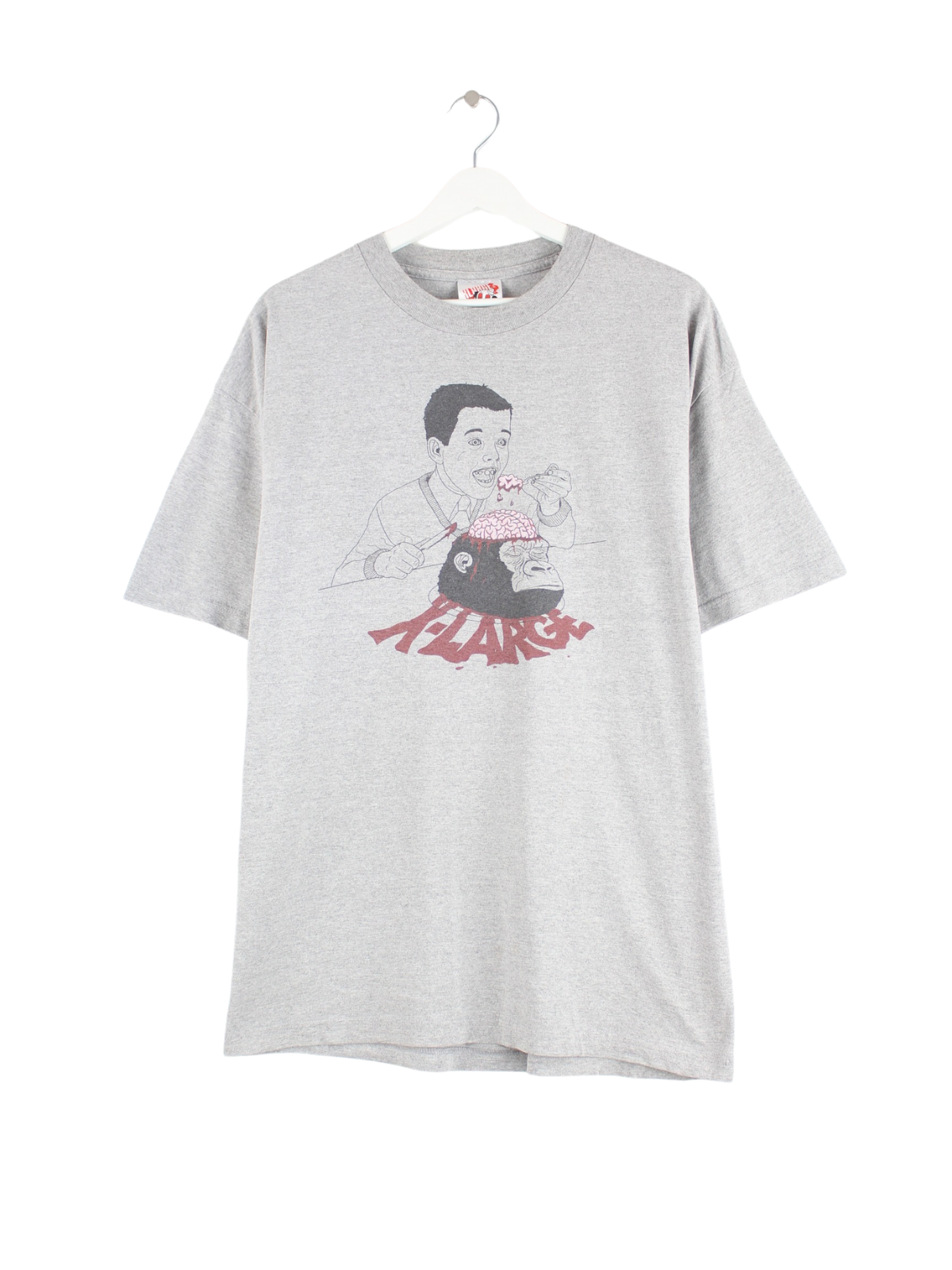 Vintage T-shirt in size XL. It is made of cotton and is available in grey. With a chic brain print.