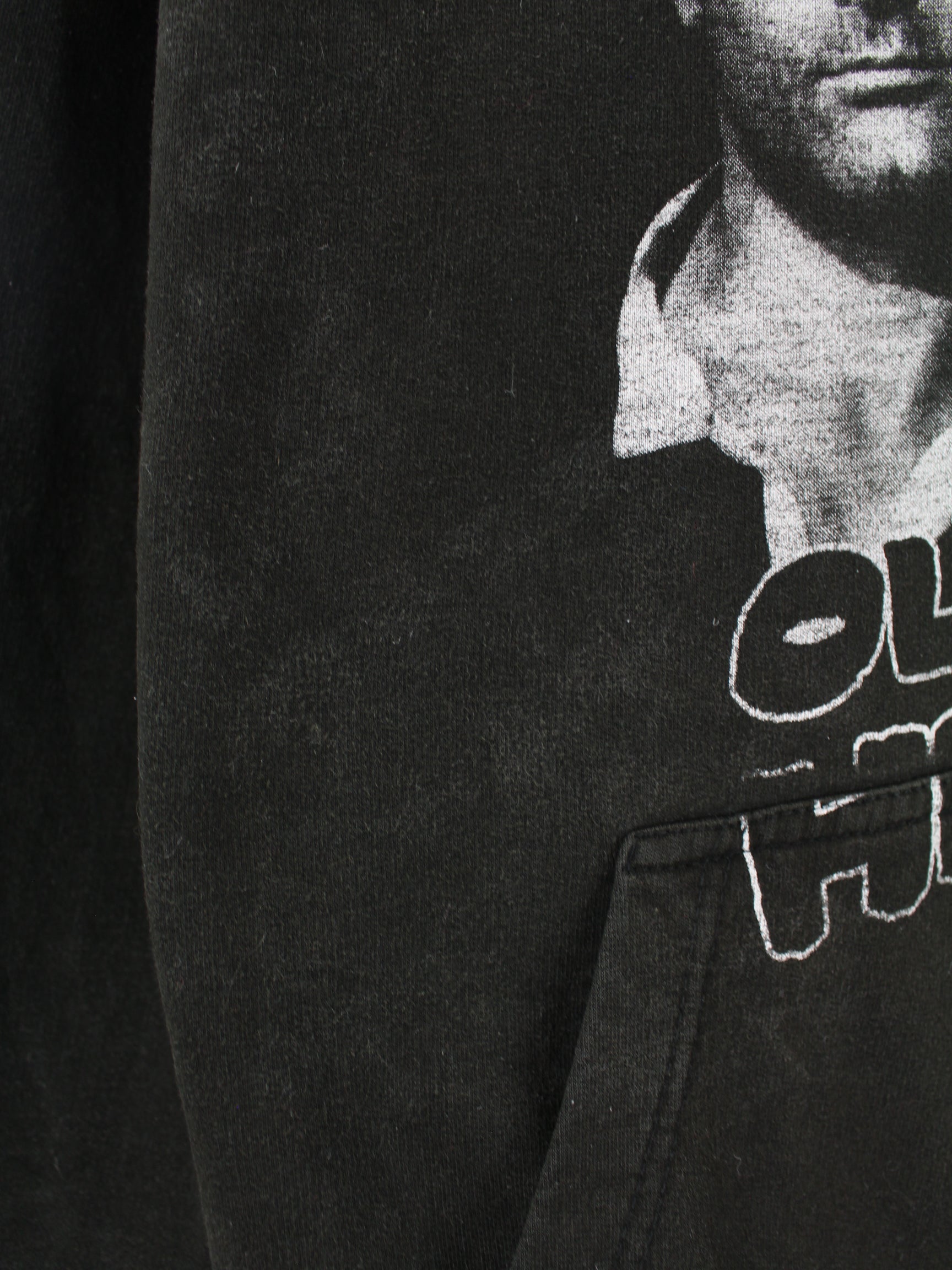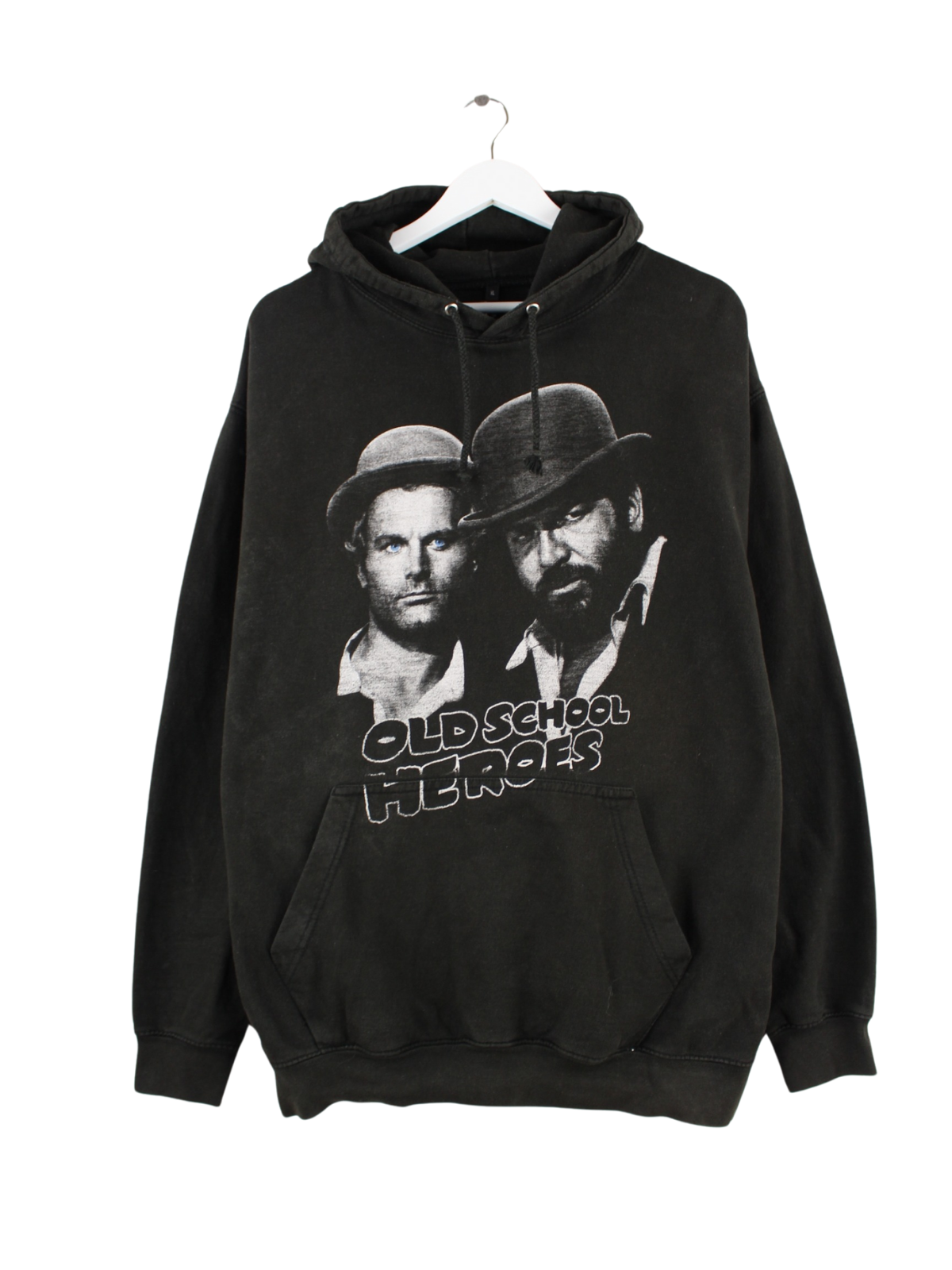 Vintage hoodie in size XL. It is made from a cotton blend and is available from us in black. With a chic Spencer print.