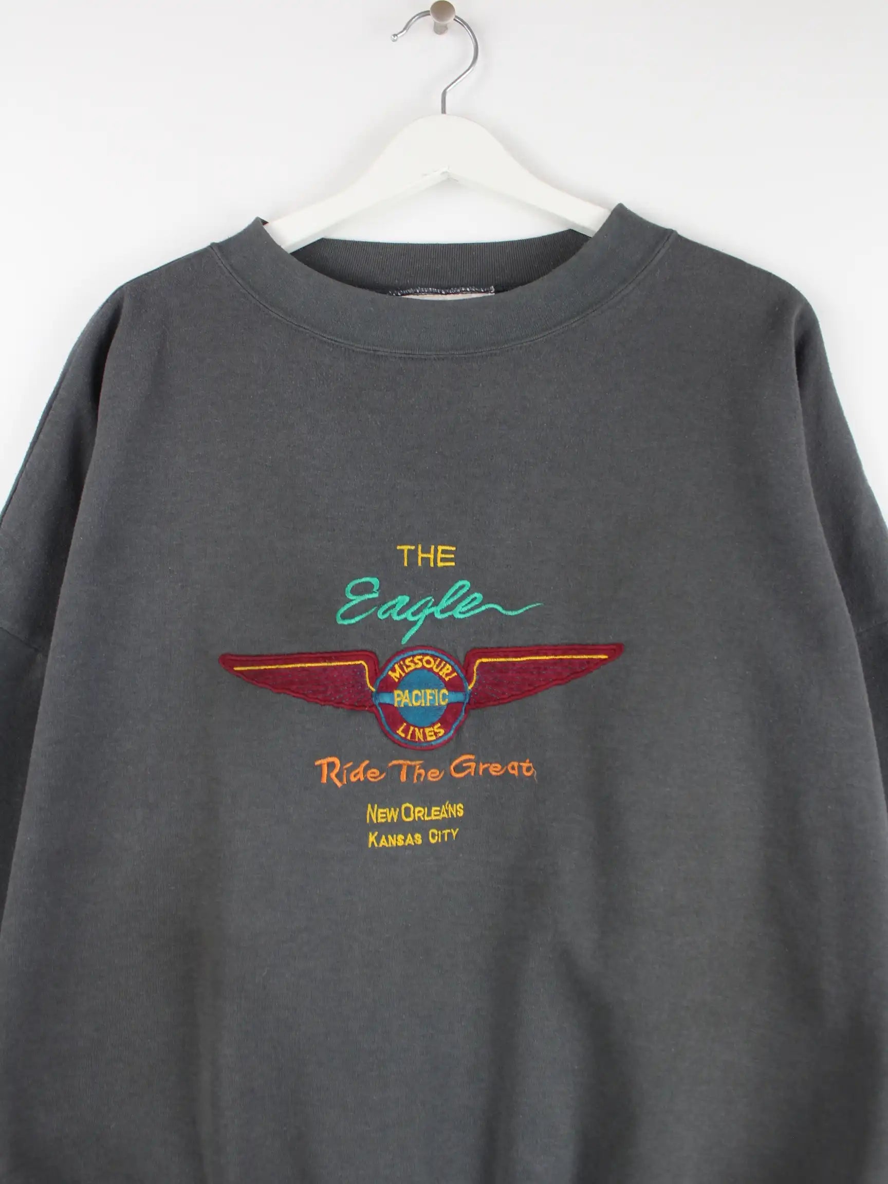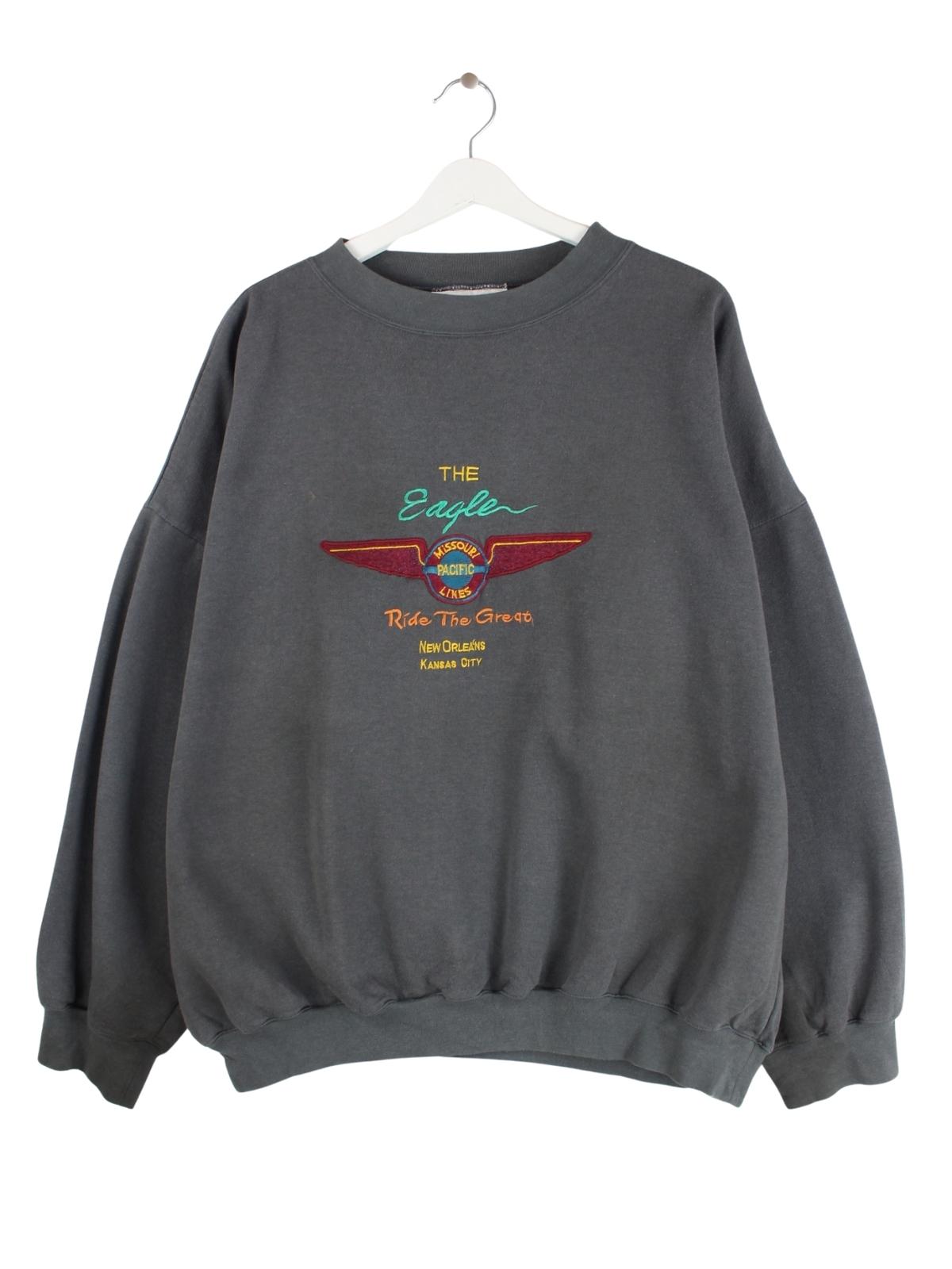 Vintage Sweater in Größe L aus den 80'ern. Er ist aus einer Baumwollmischung und in Grau lieferbar.