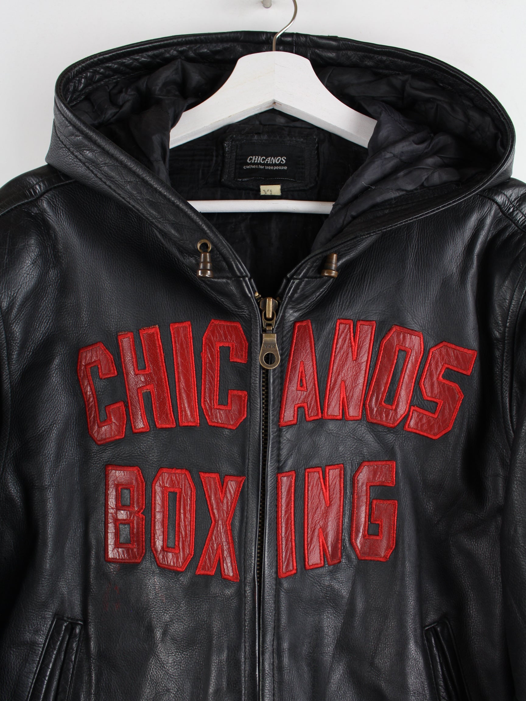 Vintage Chicanos Boxing Leather College Jacket Black M