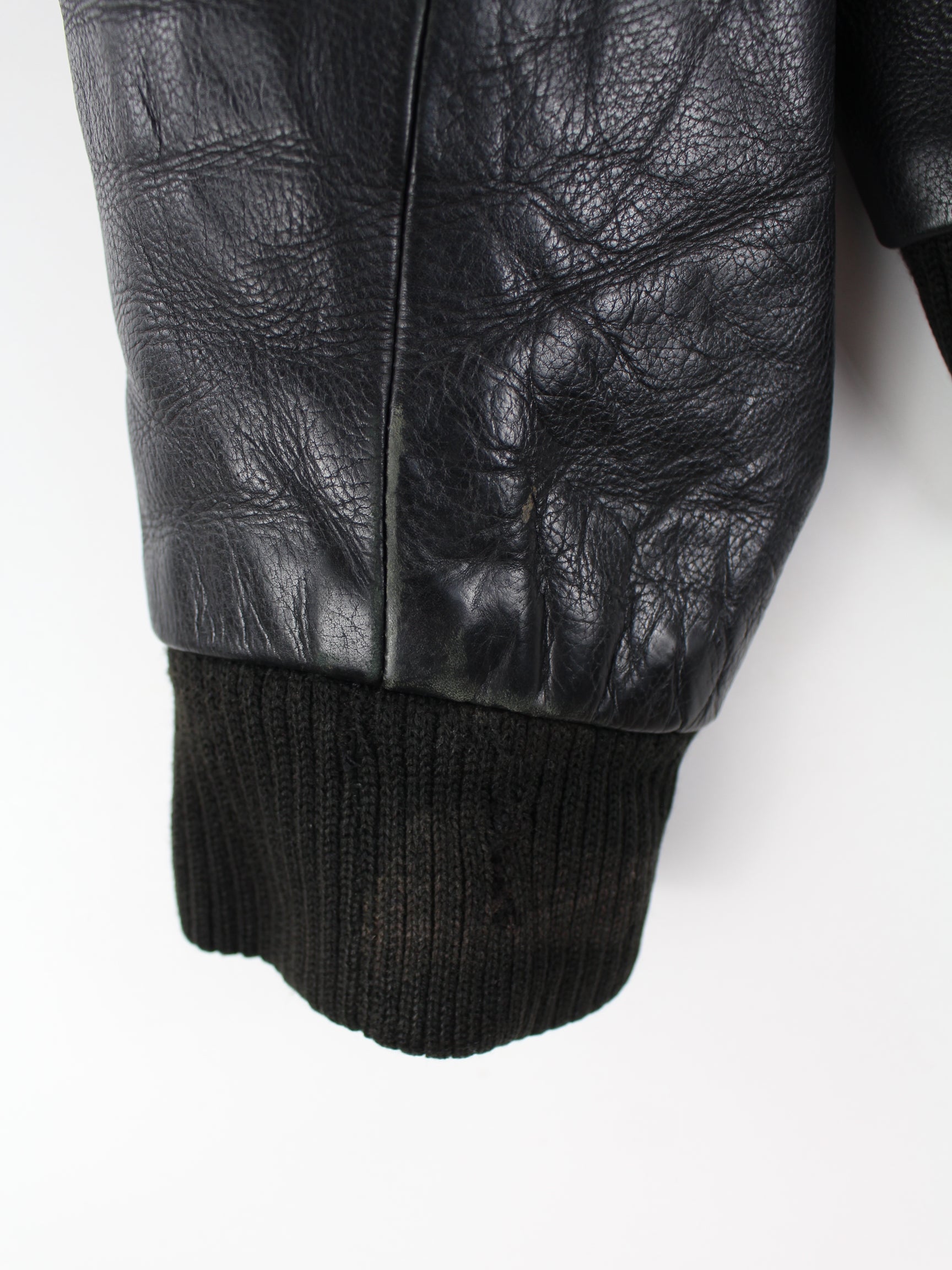 Black vintage jacket in size M. It is made of leather and in good condition.