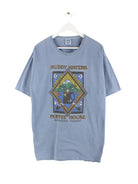 Blaues Vintage T-Shirt in Größe XL. Es ist aus einer Baumwollmischung und in sehr gutem Zustand vorrätig. Mit schickem House Print.