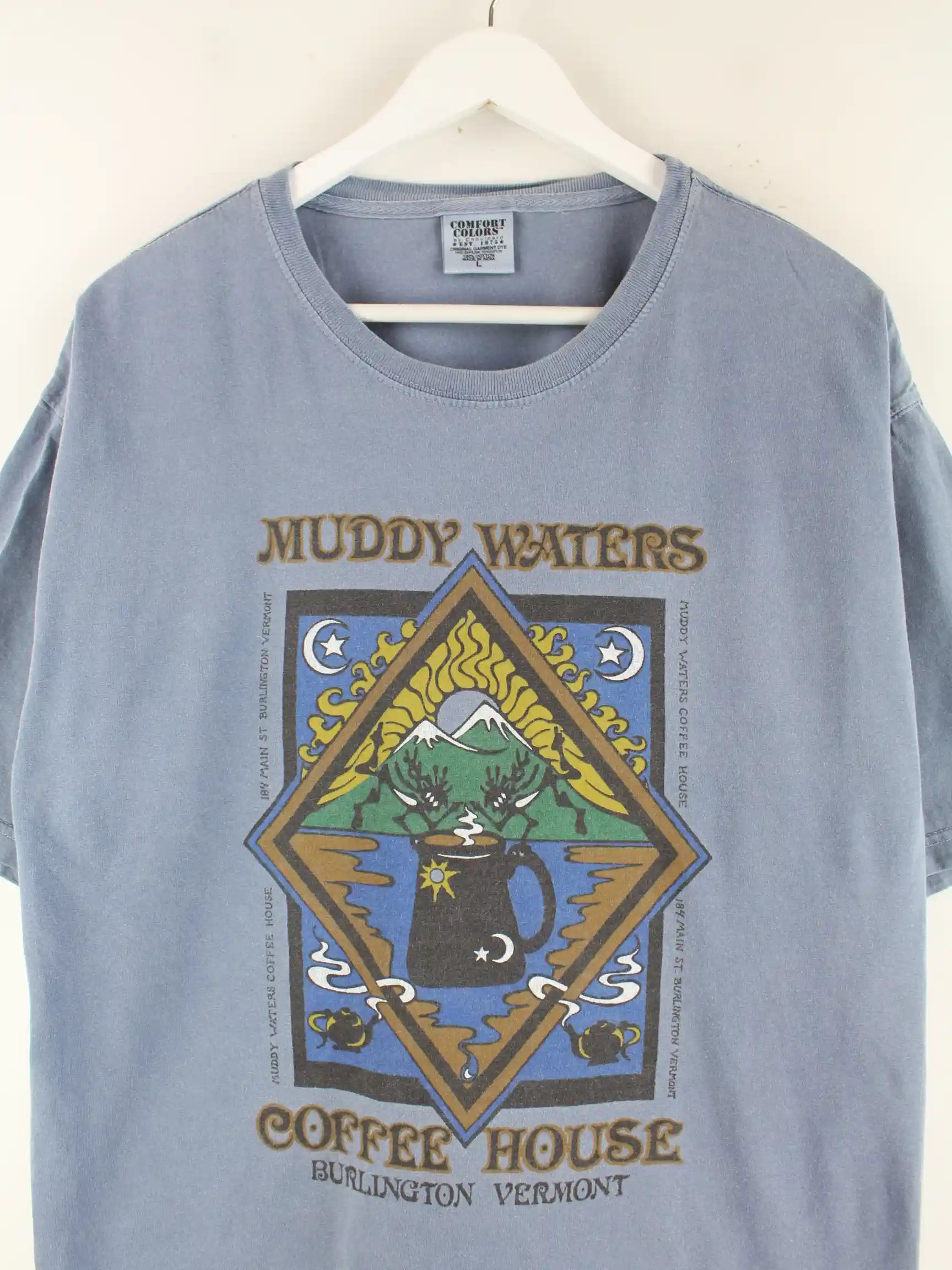 Vintage Coffee House Print T-Shirt Blau XL