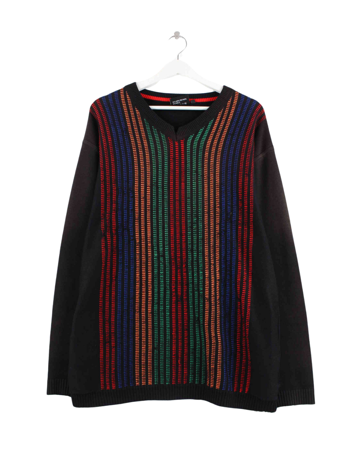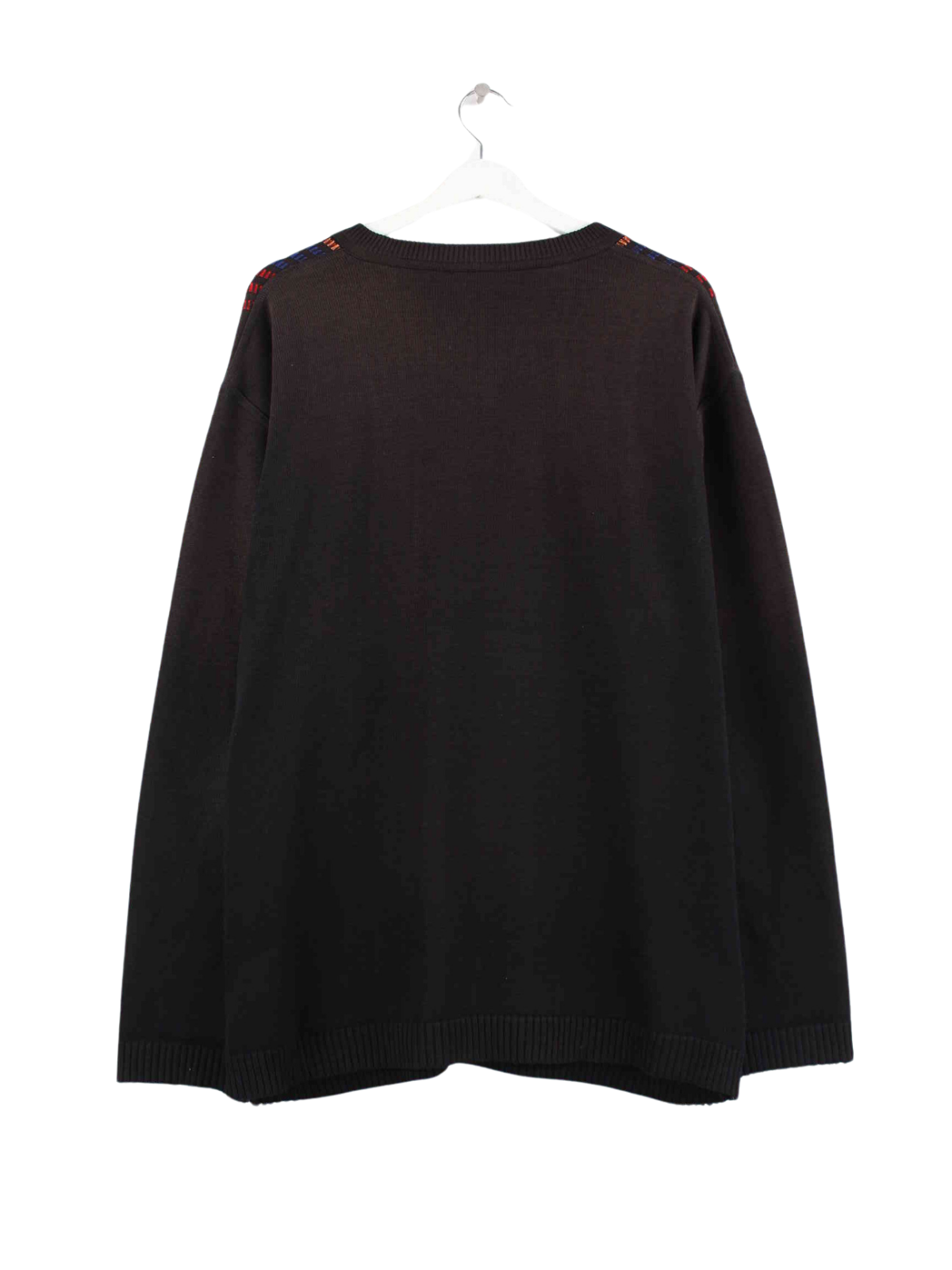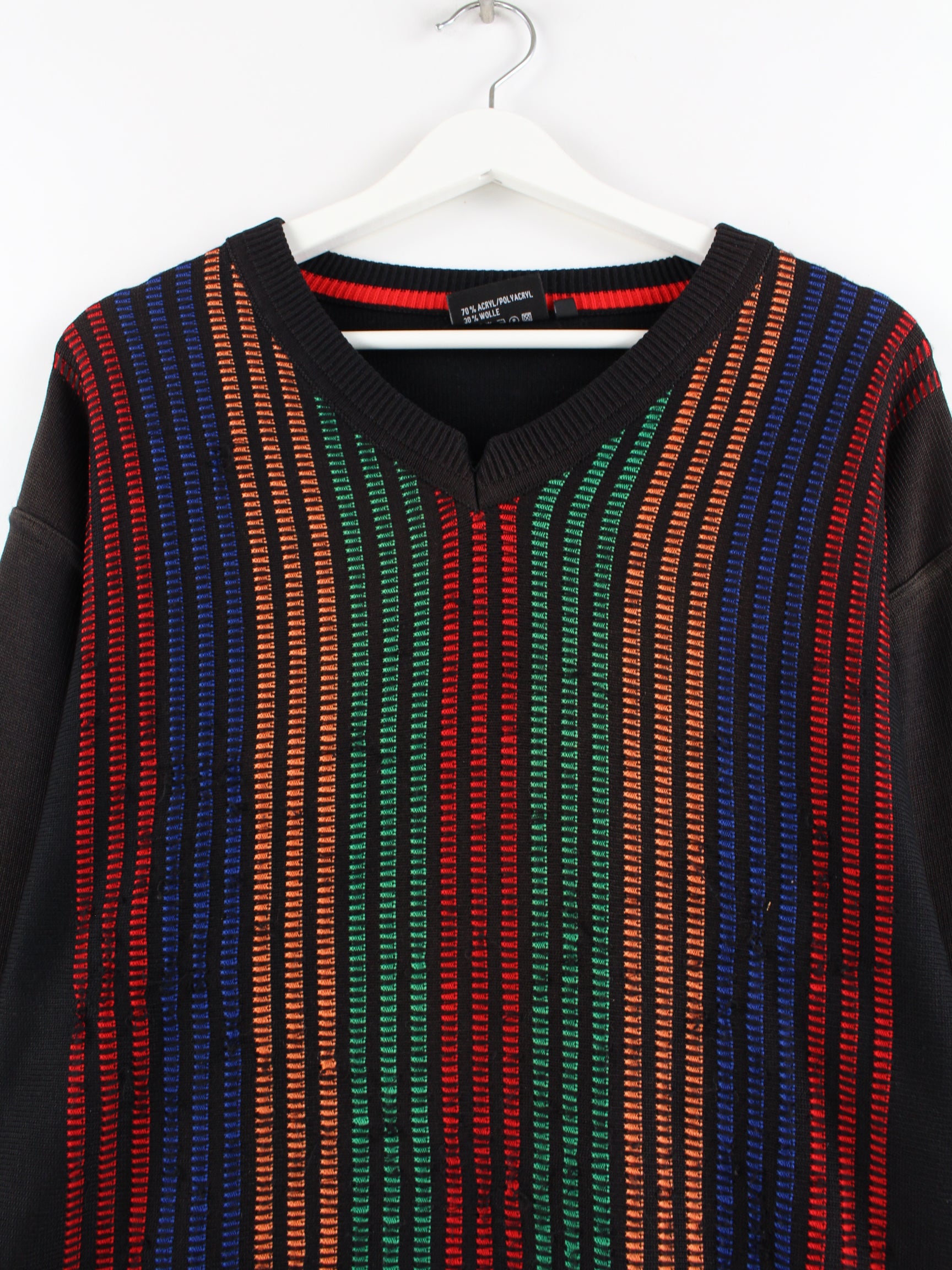 Vintage Crazy Pattern V-Neck Sweater Black XL