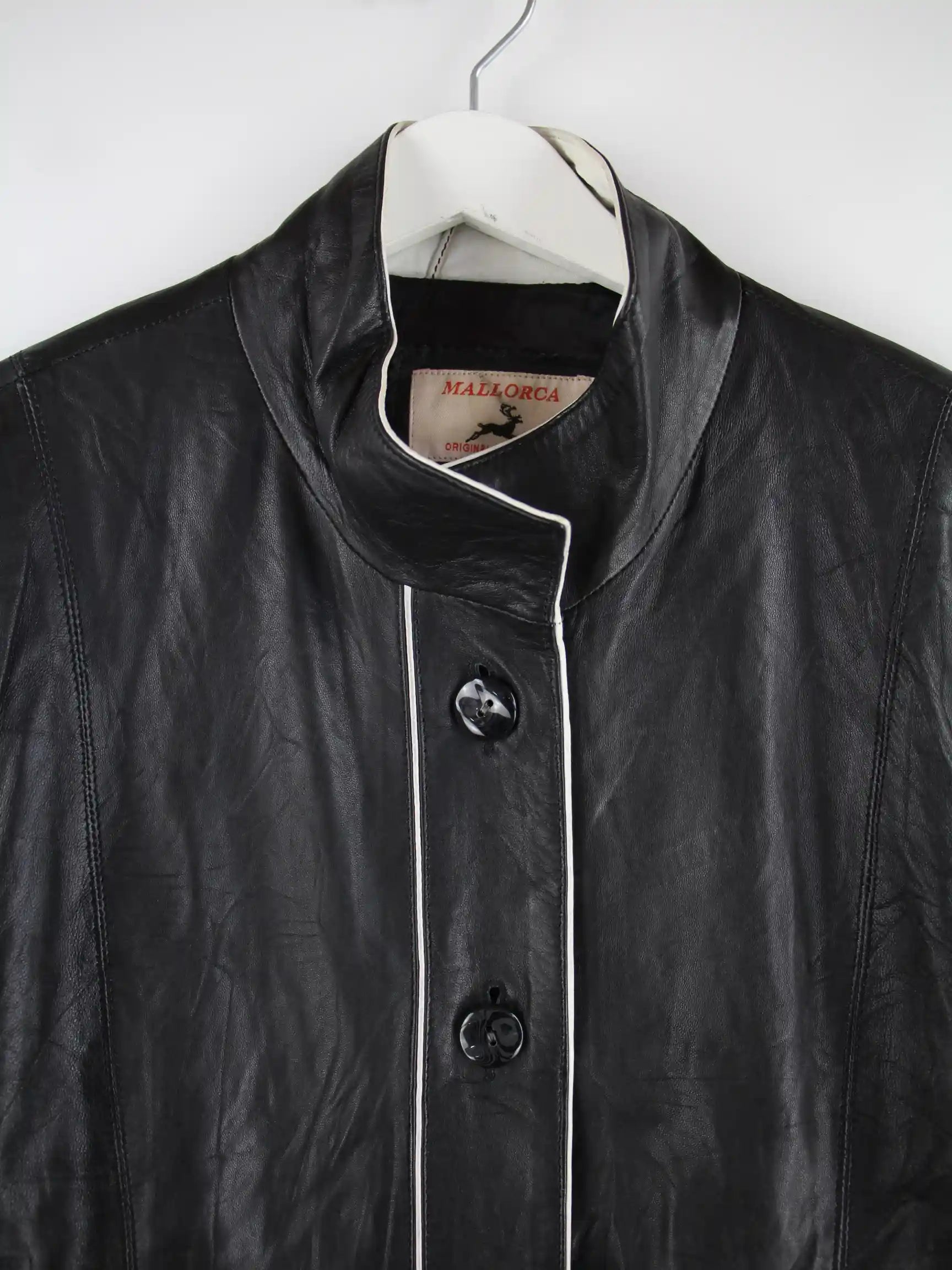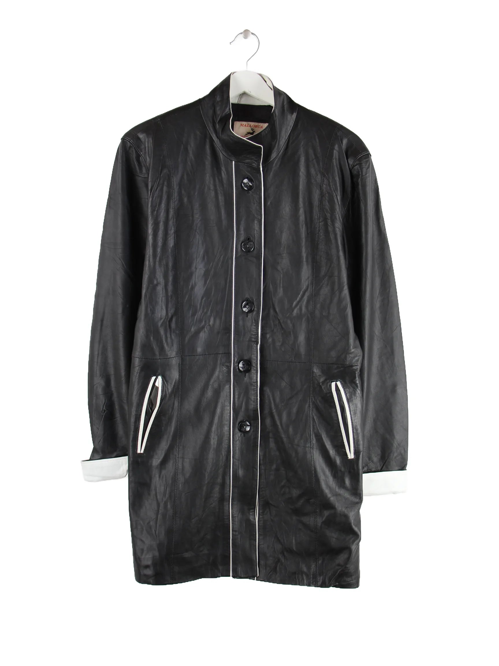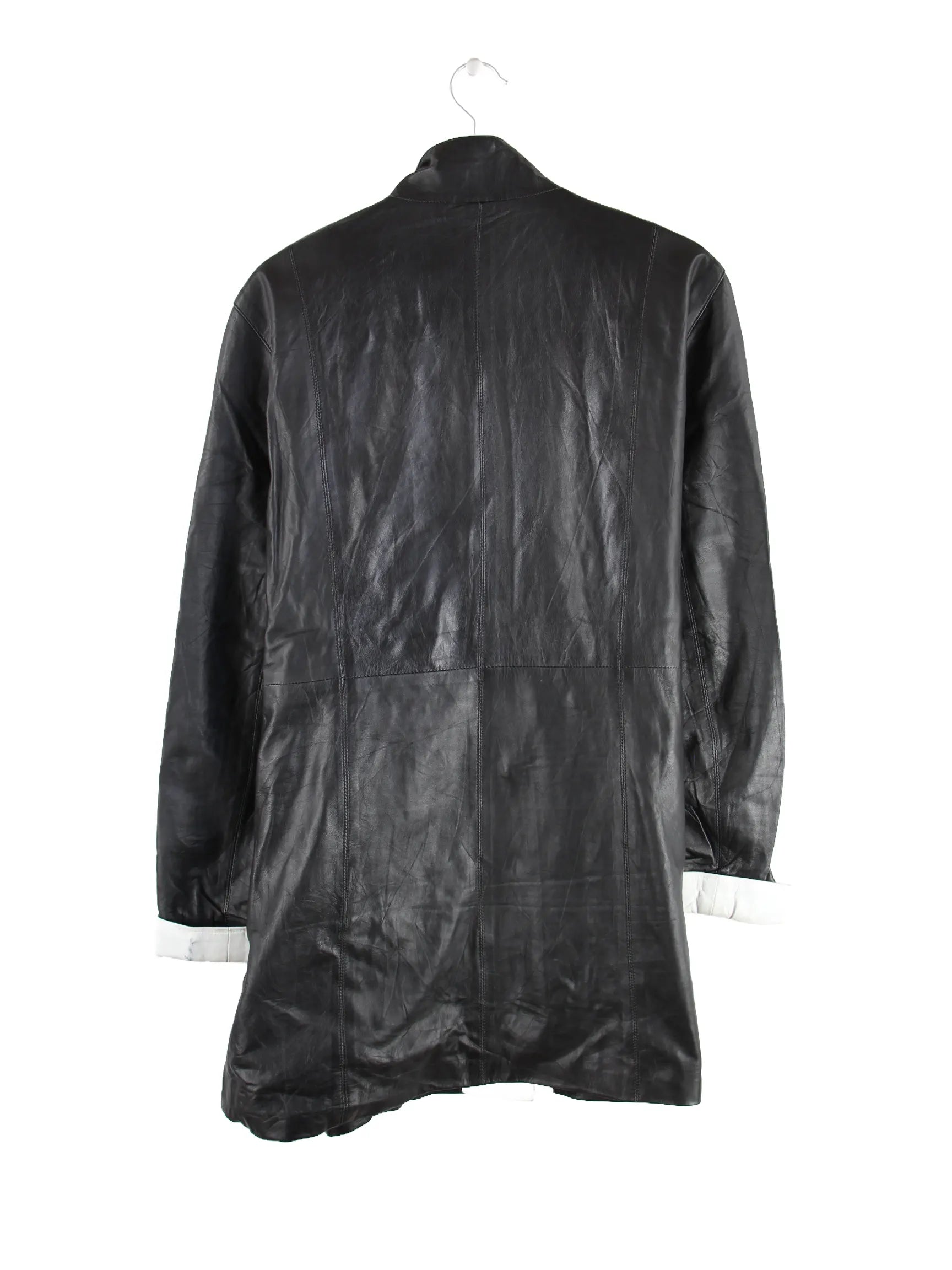 Schwarzer Vintage Mantel in Größe XL. Er ist aus Leder gemacht und in gutem Zustand im Bestand.