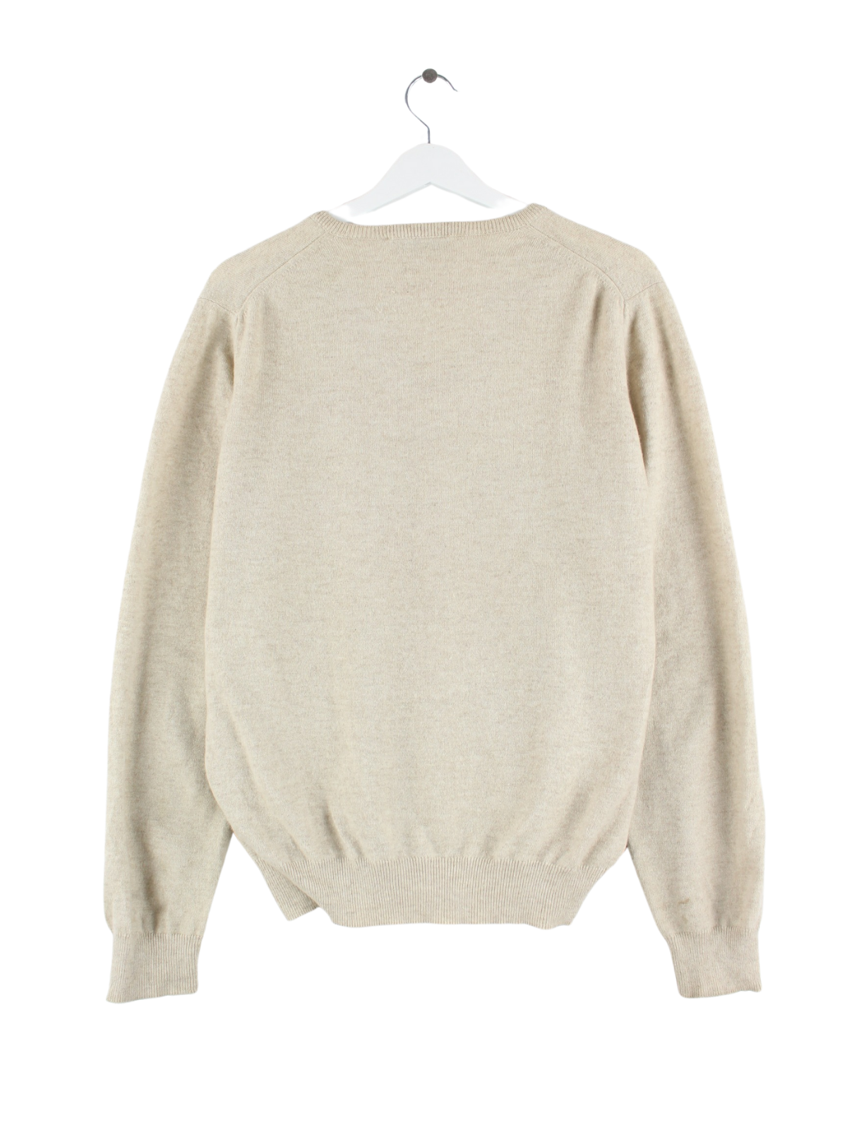 Vintage Pullover in Größe M. Er ist aus Wolle angefertigt und in Beige in Stock.