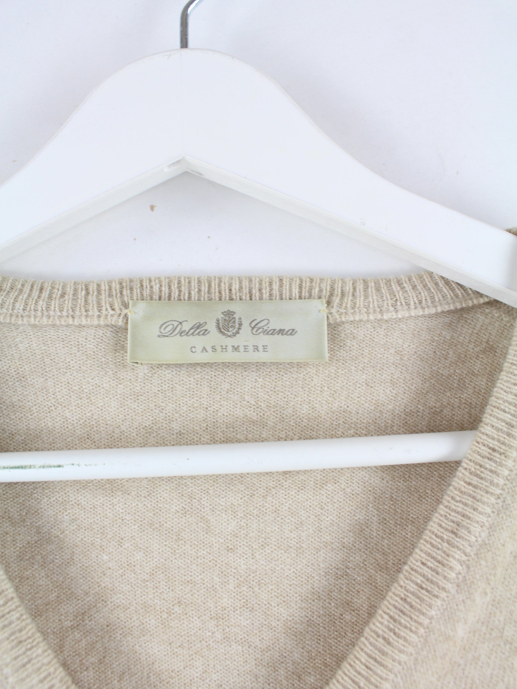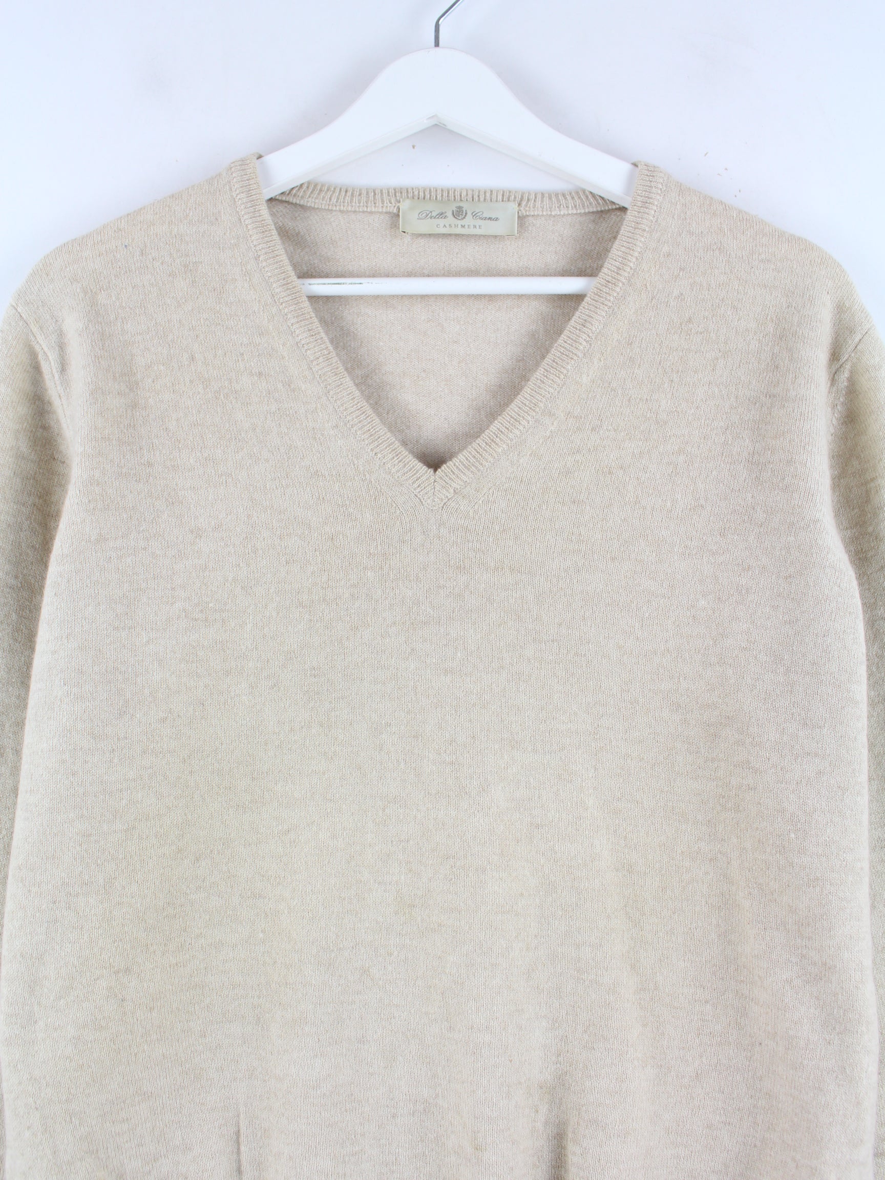 Vintage Damen 100% Kaschmir V-Neck Pullover Beige M
