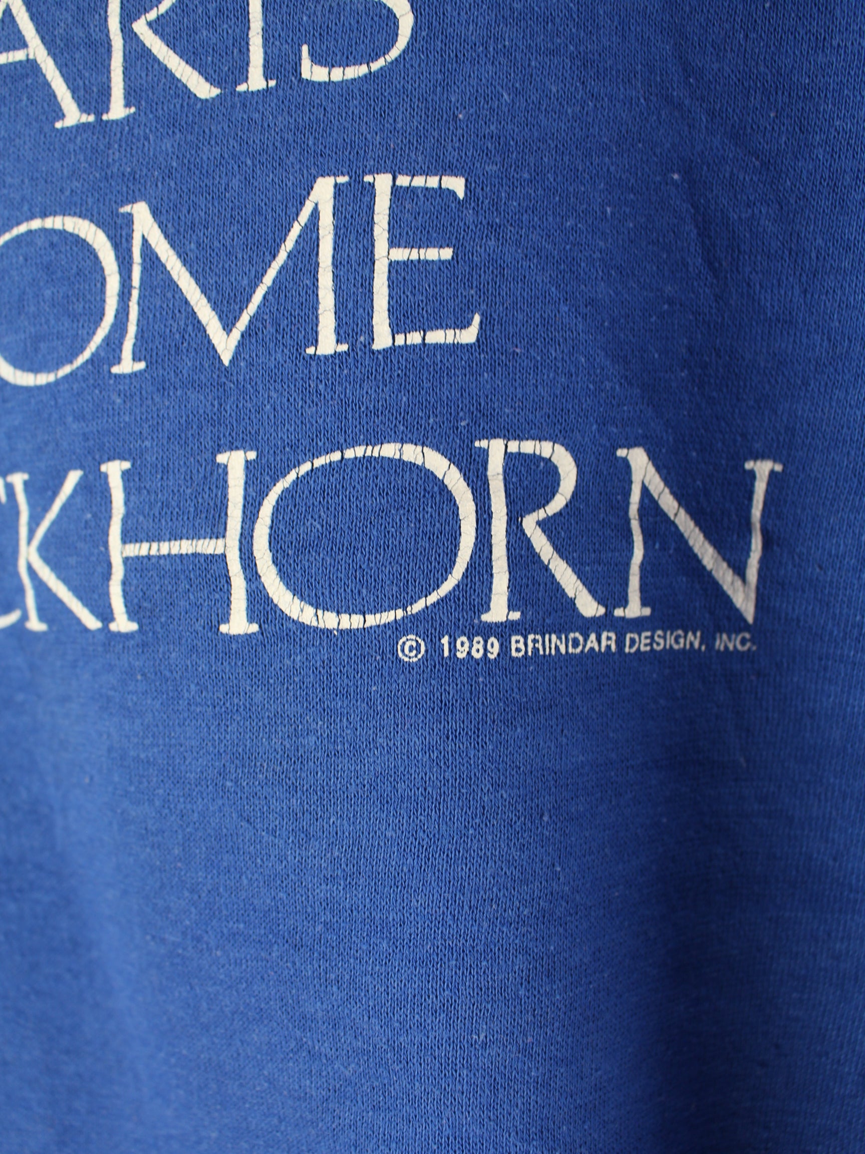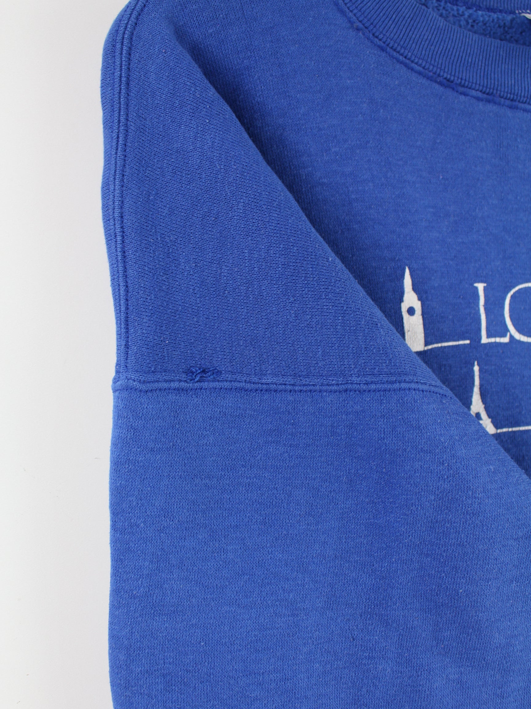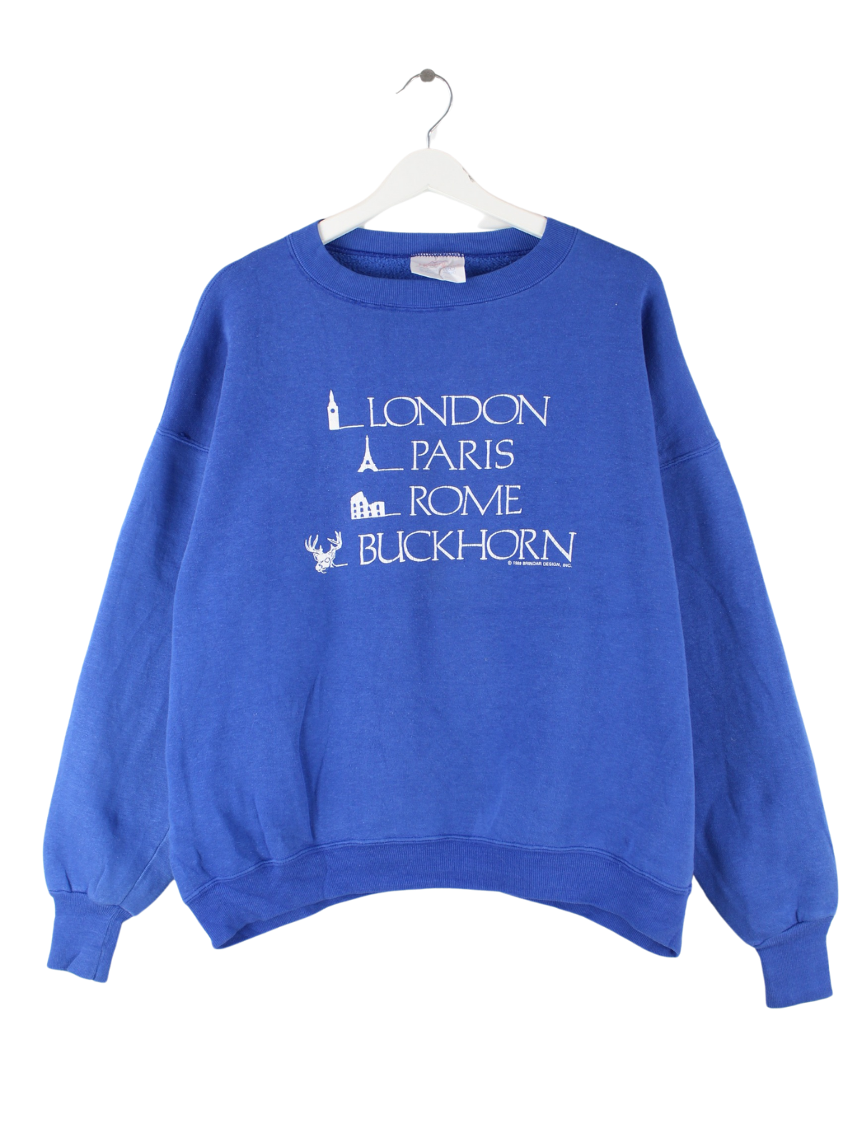 Vintage Damen 1989 Capitals Print Sweater Blau XL
