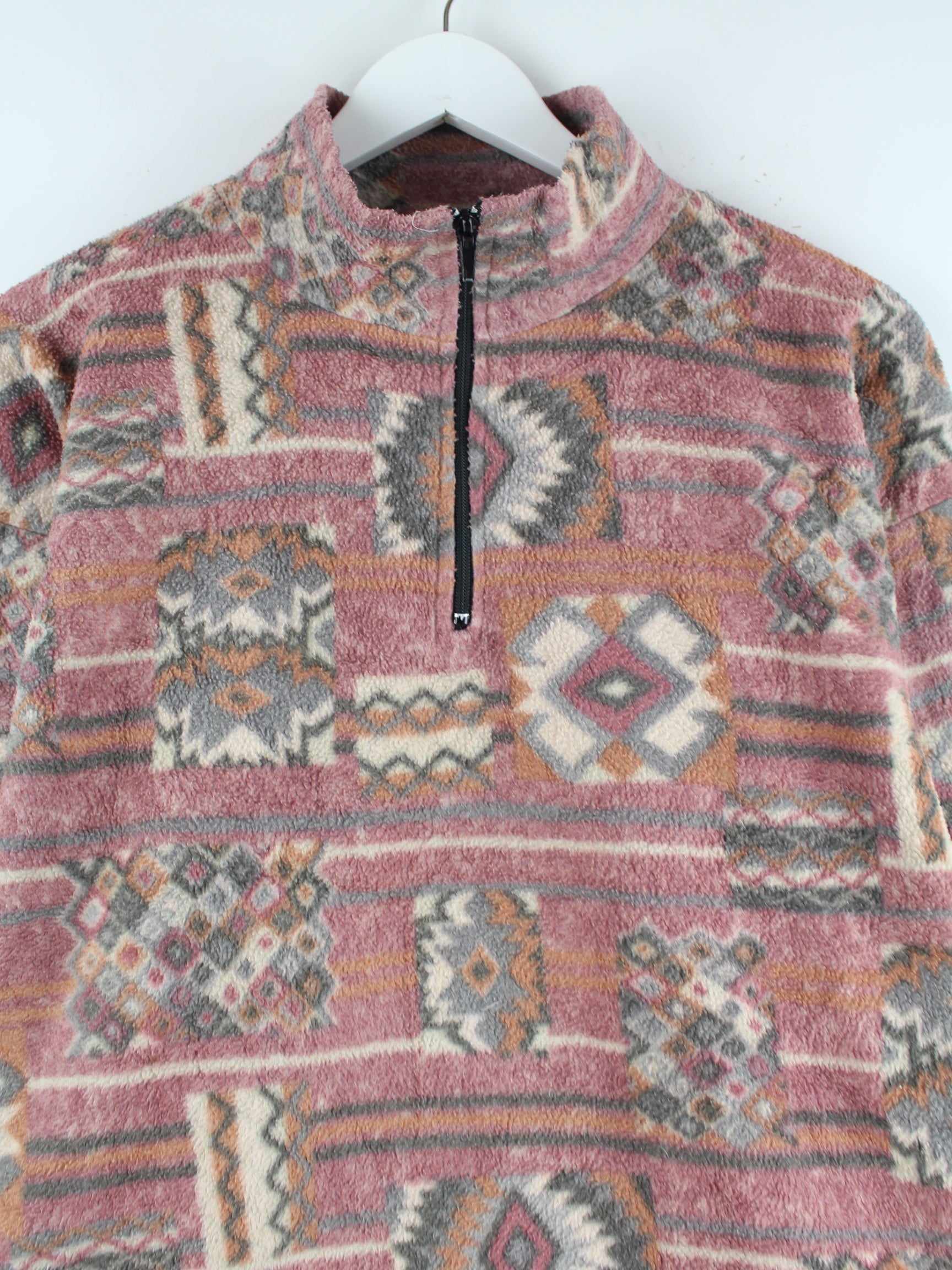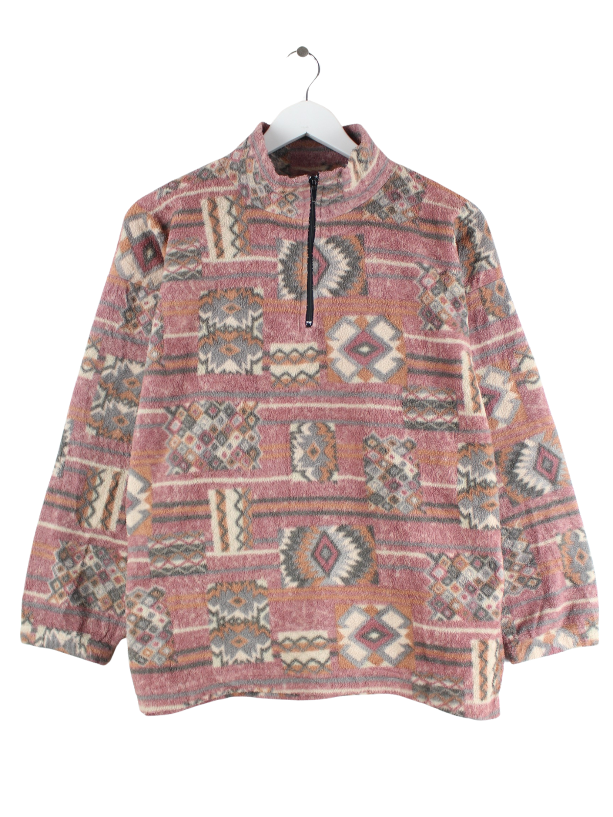 Vintage Damen 80s Crazy Pattern Fleece Half Zip Sweater Mehrfarbig S