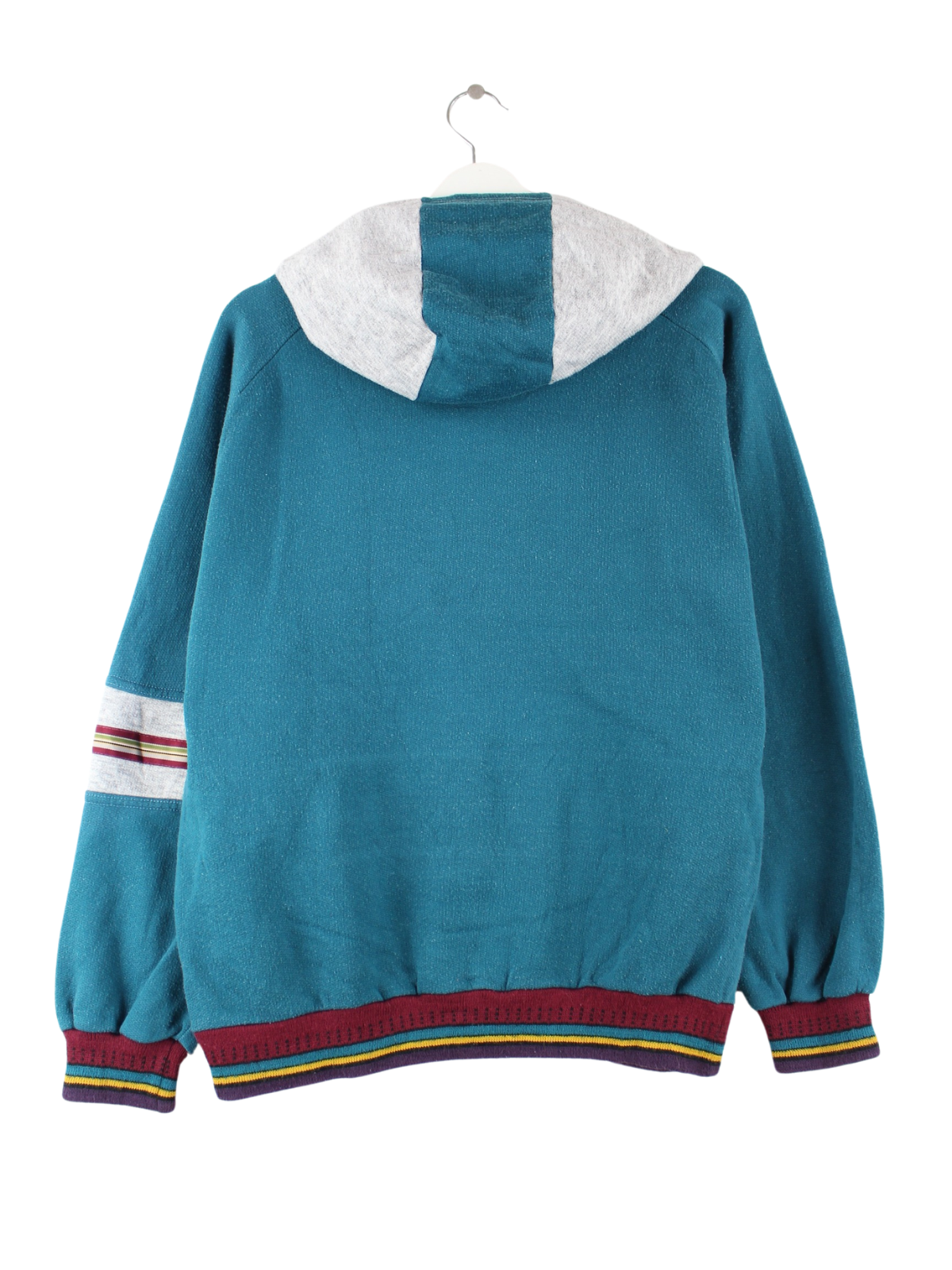 Vintage hoodie with embroidered motifs in size L from the 80's. It is made from a cotton blend and is available in green.