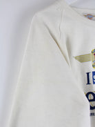 Vintage Sweater in Größe L aus den 90'ern. Er ist aus einer Baumwollmischung produziert und in Beige bei uns vorrätig.