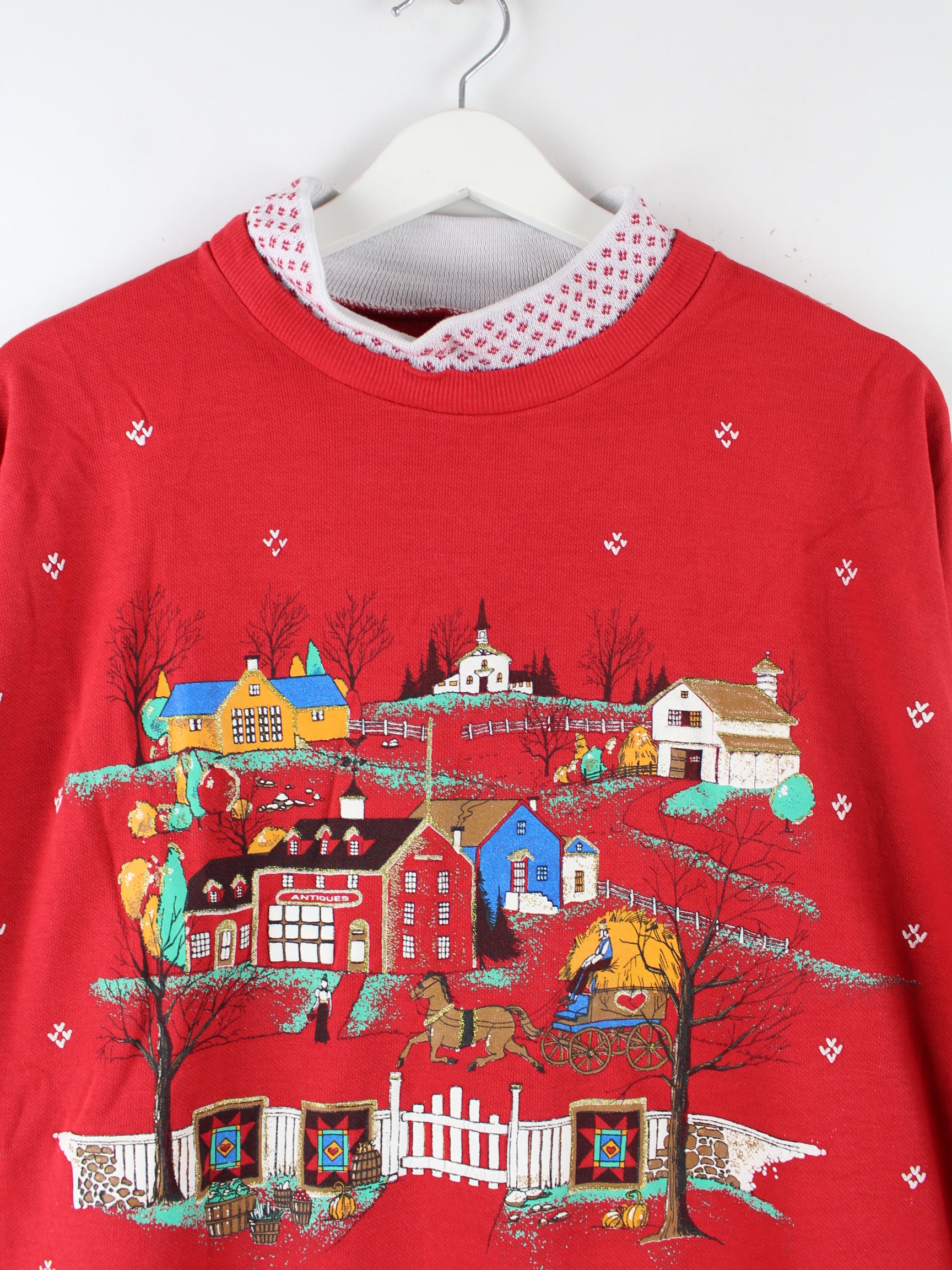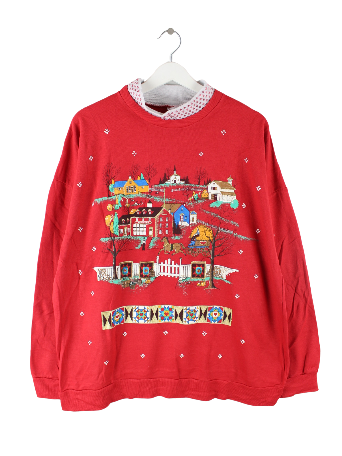 Vintage Damen 90s Christmas Print Sweater Rot XL