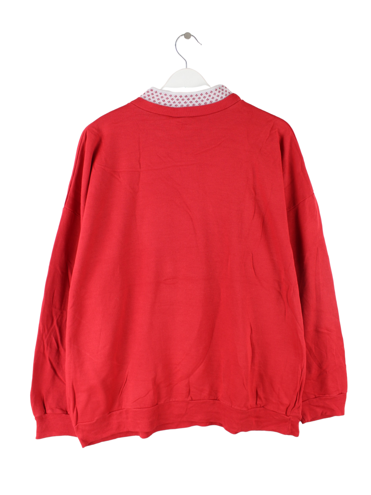 Roter Vintage Sweater aus den 90'ern in Größe XL. Er ist aus einer Baumwollmischung gemacht und in sehr gutem Zustand lieferbar. Mit schönem Christmas Print.