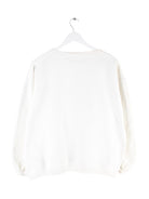 Vintage Sweater mit gesticktem Logo in Größe L aus den 90'ern. Er ist aus einer Baumwollmischung produziert und in Weiß vorrätig.